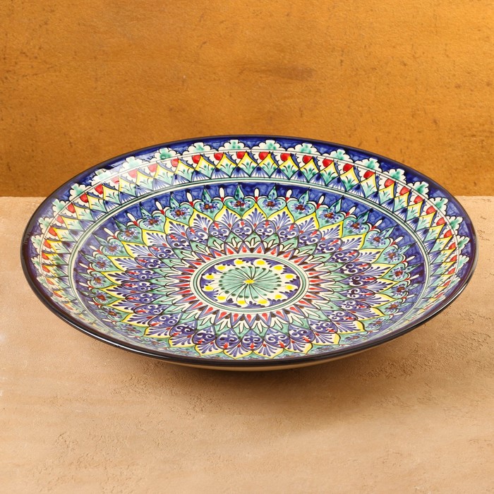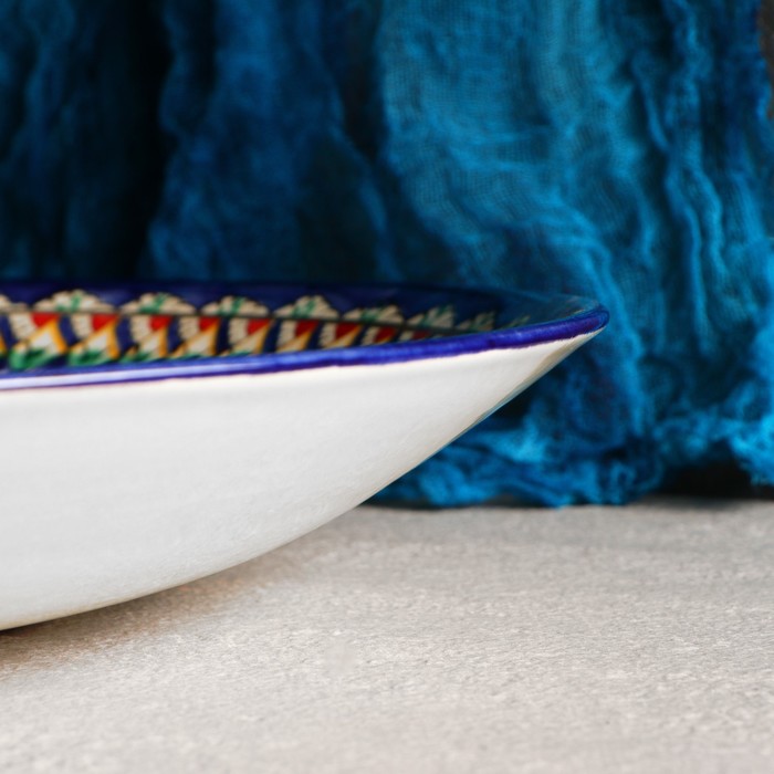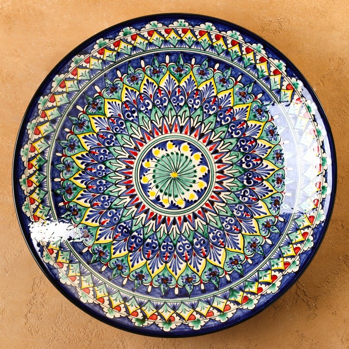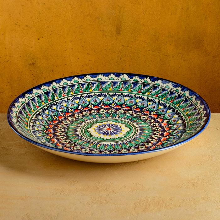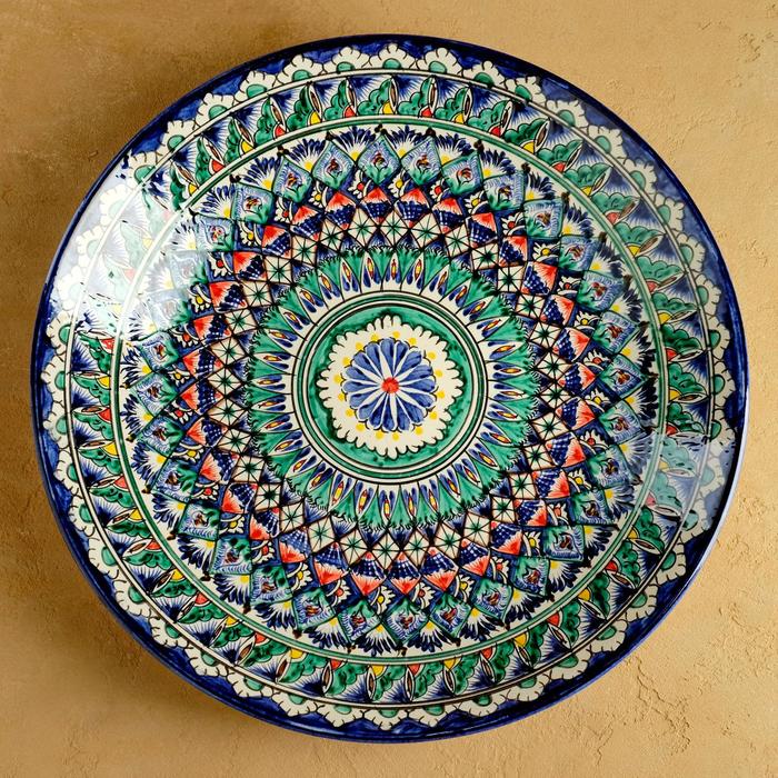 Украсьте ваш стол и подарите гастрономическое наслаждение с нашим большим узбекским ляганом из Риштанской керамики. Эта глубокая синяя тарелка ручной работы диаметром 41 см, украшенная традиционными цветочными узорами, станет центром притяжения на любой трапезе и подчеркнет изысканность ваших блюд.