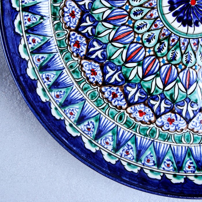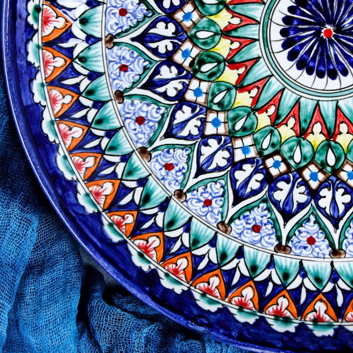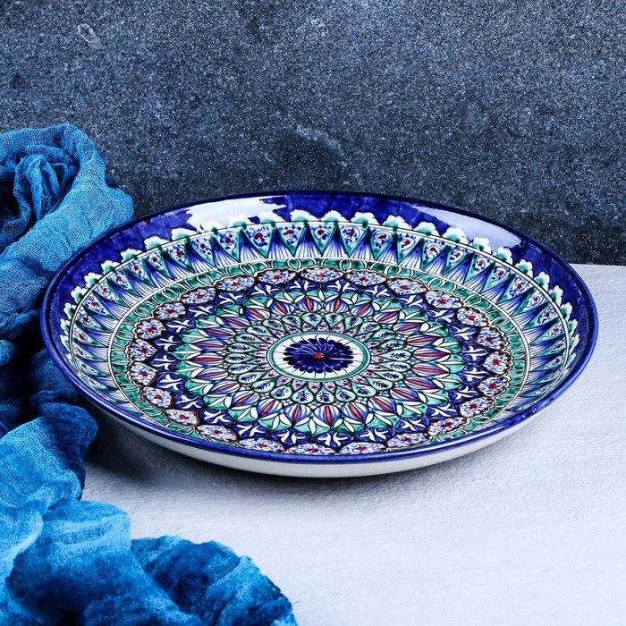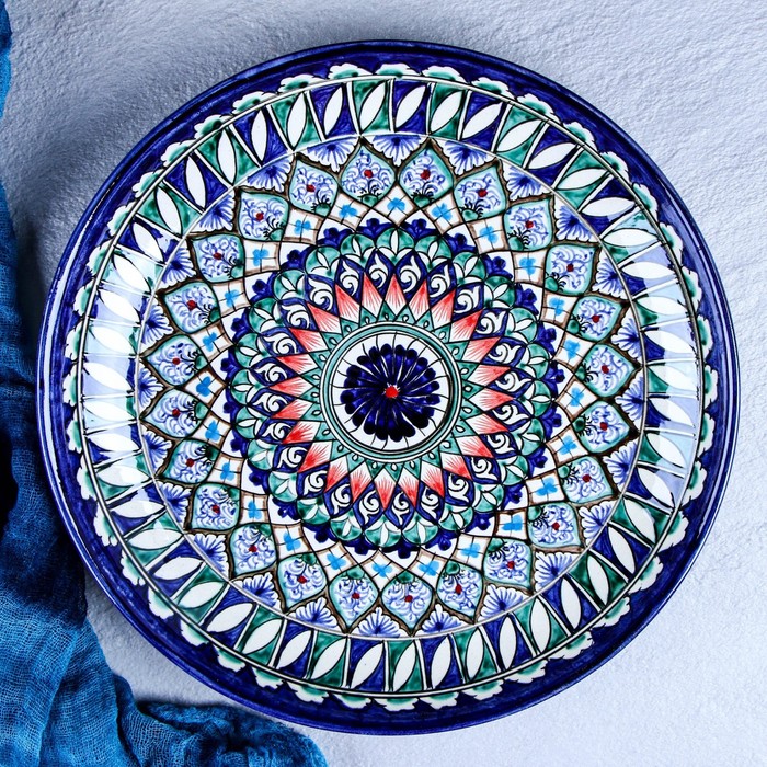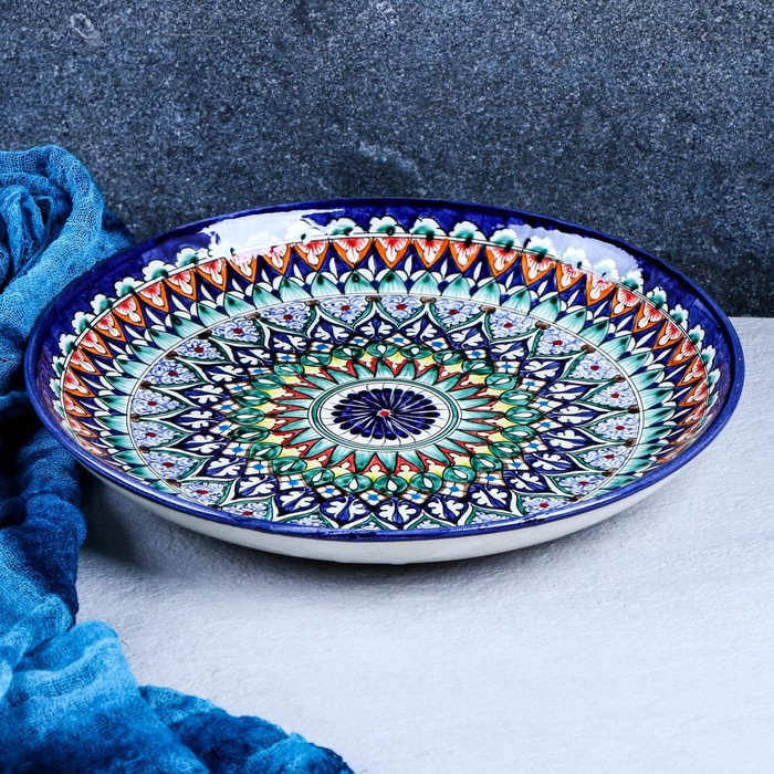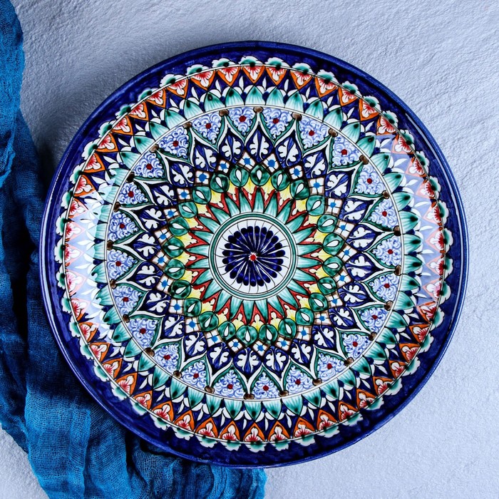 Габариты: 31 x 31 x 4,5 Страна: Узбекистан В боксе: 25 шт Состав: Керамика Материалы: керамика Фасовка: по 1 шт Индивидуальная упаковка: Без упаковки Сертификат: СТР Набор: Нет Цвет: Разноцветный Форма: Круглая Диаметр, см: 28 Тематика: Орнамент Рисунок: Да Крышка: Нет Материал: Керамика Вид тарелки: Плоская Можно мыть в посудомоечной машине: Нет Можно использовать в СВЧ-печи: Да Текстура: Гладкая Особенности: Ручная работа Матовая поверхность: Нет Посуда с национальной росписью станет отменным подарком для ценителей высокородной посуды. Риштан — город на востоке Узбекистана, один из древнейших в Ферганской долине. С давних времён Риштан славится своим гончарным искусством изготовления цветной керамики. Красноватую глину для изделия добывают в самом городе. Мастера утверждают, что их глина настолько высокого качества, что даже не нуждается в предварительной обработке. Дополните коллекцию кухонных аксессуаров пряными восточными нотами. Все товары производства Узбекистан. ДополнительноКомментарии к товару