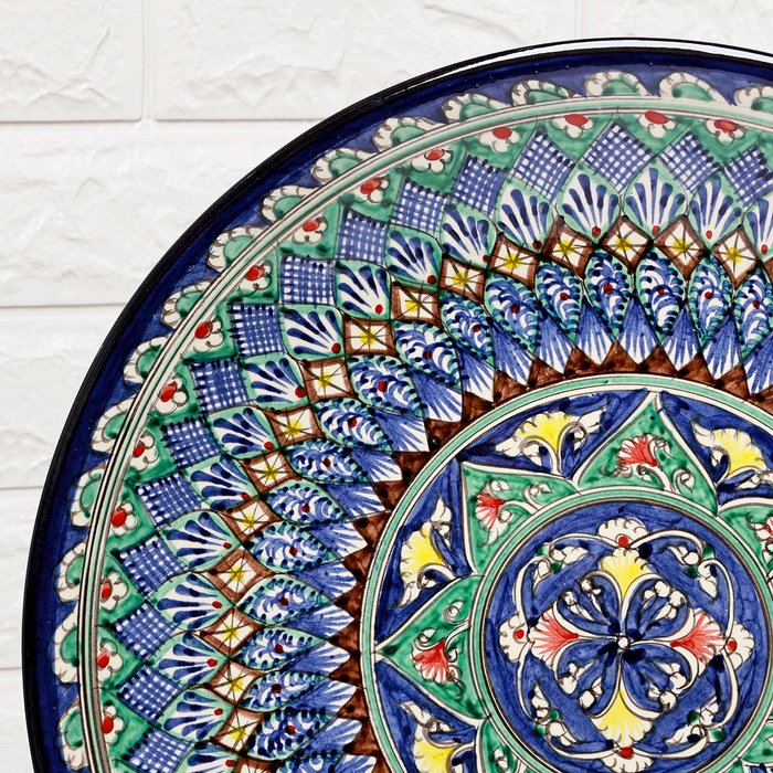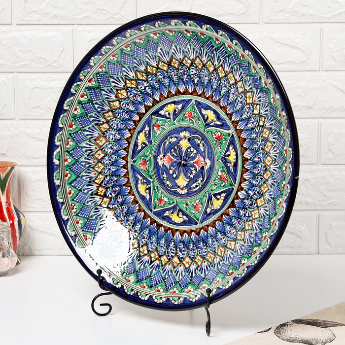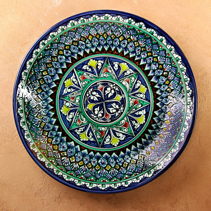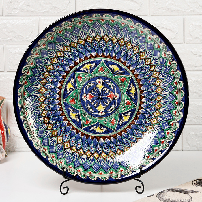 Ляган узбекский Риштанская керамика «Узоры» для плова, 43 см, разноцветный