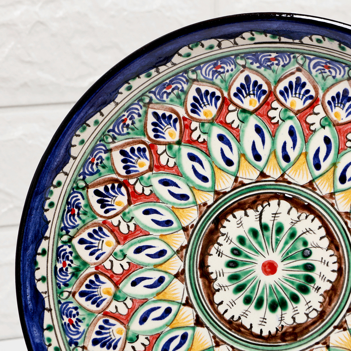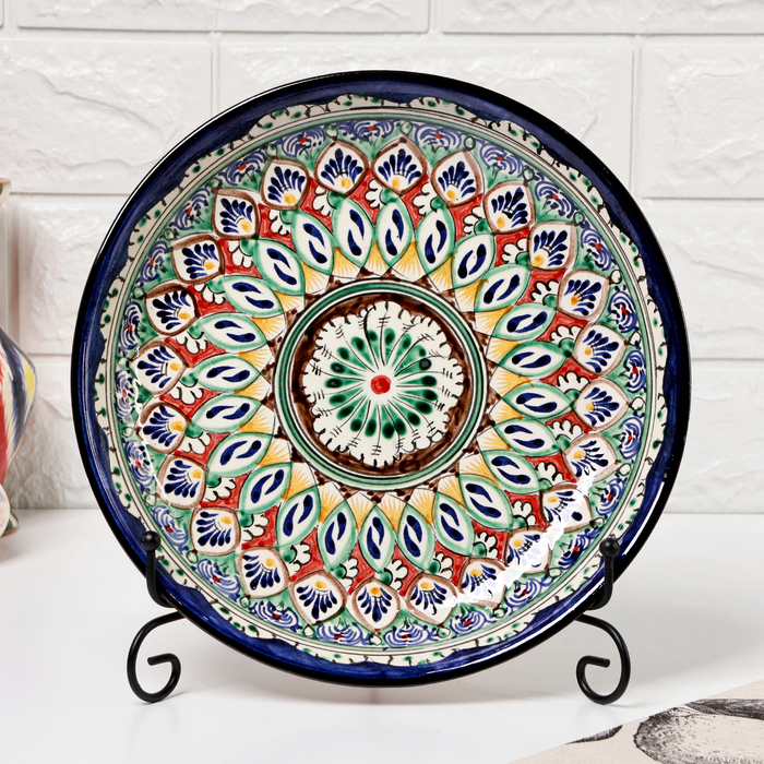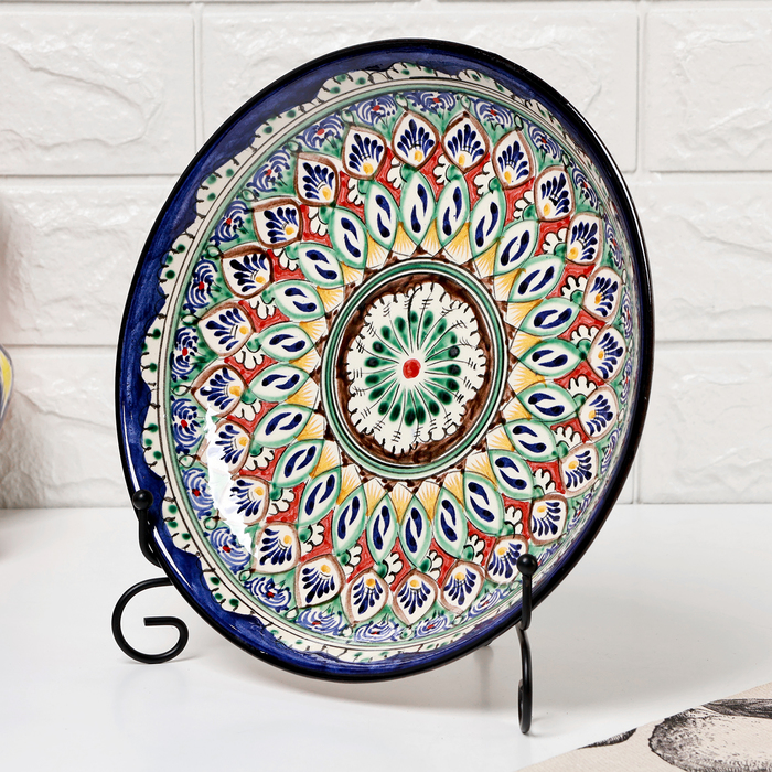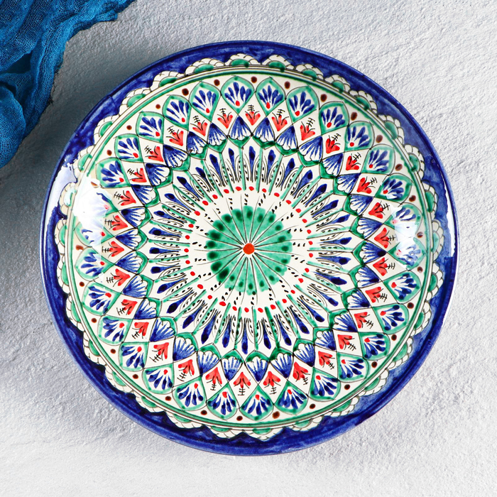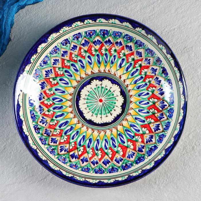Ляган узбекский Риштанская керамика «Узоры», для плова, d=25 см, синий