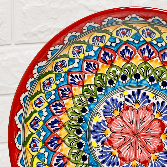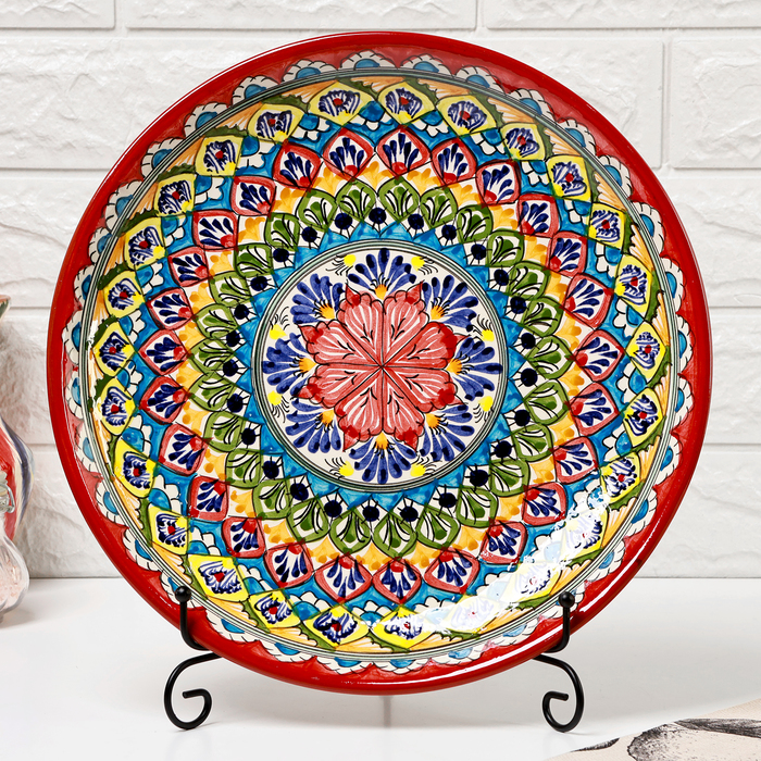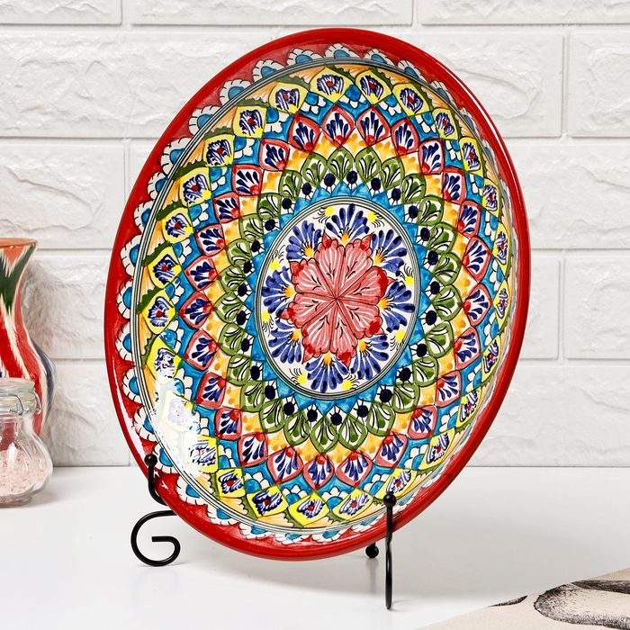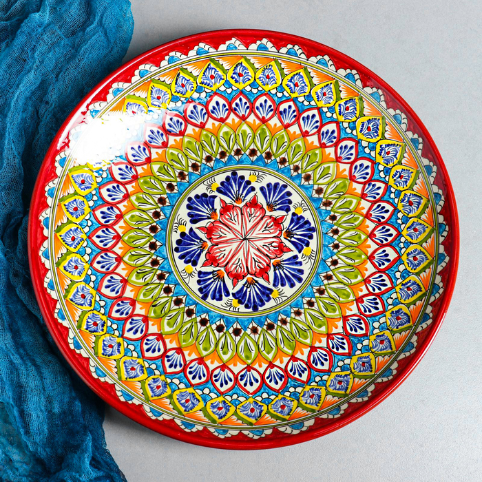 Подайте ваш плов с особым шиком на нашем большом узбекском блюде. Этот красочный ляган, созданный вручную в технике риштанской керамики, диаметром 32 см, станет настоящим украшением вашего стола. Традиционные растительные узоры в сочетании с яркими цветами перенесут вас в атмосферу восточного гостеприимства. Идеально подходит не только для плова, но и для других блюд!