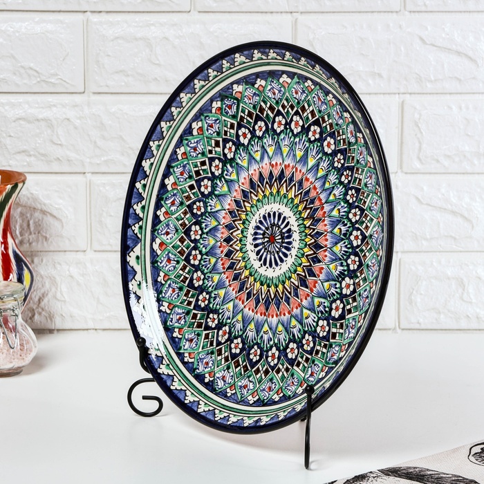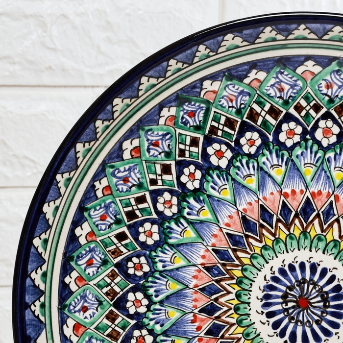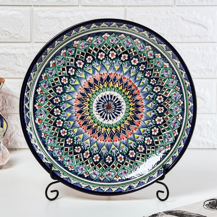 Габариты: 32 x 32 x 4 Страна: Узбекистан В боксе: 20 шт Состав: Керамика Материалы: керамика Фасовка: по 1 шт Индивидуальная упаковка: Без упаковки Сертификат: СТР Набор: Нет Цвет: Синий Форма: Круглая Диаметр, см: 31 Тематика: Цветочно-растительная, Растительный орнамент Рисунок: Да Материал: Керамика Вид тарелки: Плоская Можно мыть в посудомоечной машине: Нет Можно использовать в СВЧ-печи: Да Текстура: Гладкая Особенности: Глазурованные Матовая поверхность: Нет Посуда с национальной росписью станет отменным подарком для ценителей высокородной посуды. Риштан — город на востоке Узбекистана, один из древнейших в Ферганской долине. С давних времён Риштан славится своим гончарным искусством изготовления цветной керамики. Красноватую глину для изделия добывают в самом городе. Мастера утверждают, что их глина настолько высокого качества, что даже не нуждается в предварительной обработке. Дополните коллекцию кухонных аксессуаров пряными восточными нотами. Все товары производства Узбекистан. ДополнительноКомментарии к товару