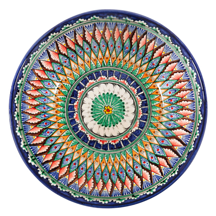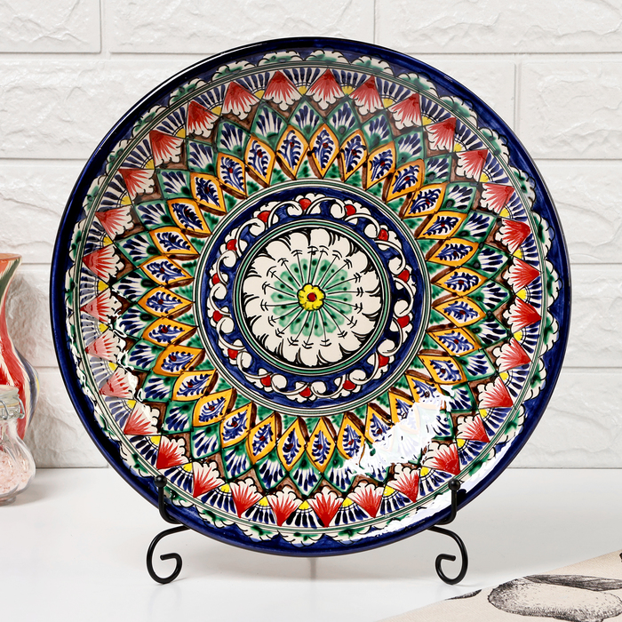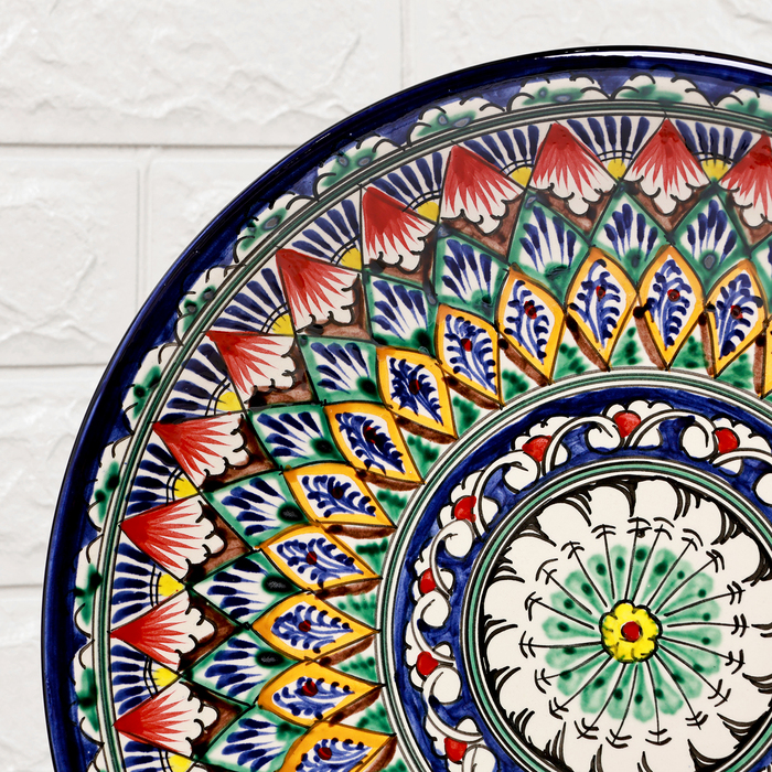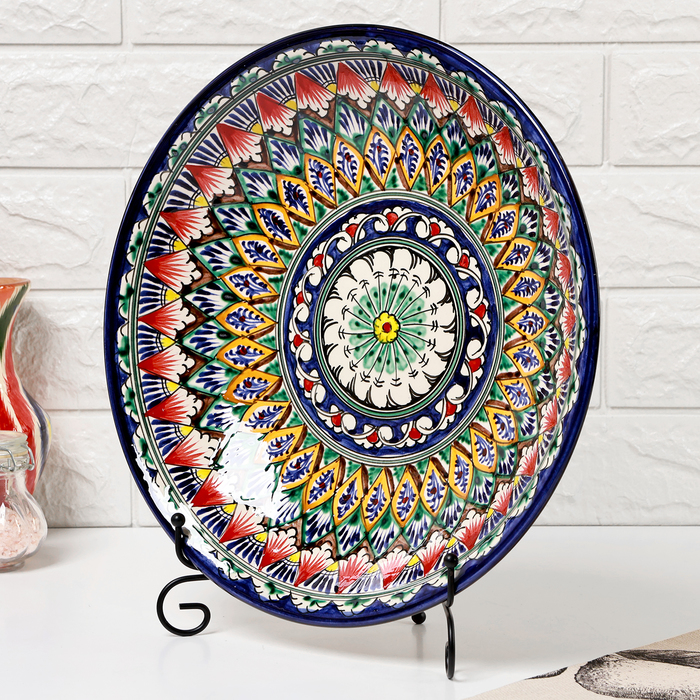 Ляган узбекский Риштанская керамика «Узоры», для плова, d=33 см, глубокий, синий