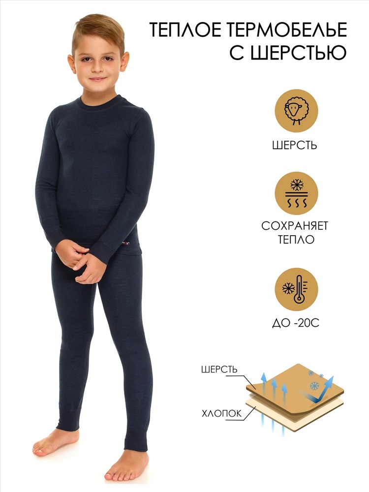 Термокомплект из лонгслива и кальсон выполнен из двухслойного полушерстяного полотна, обеспечивающего повышенную теплосберегаемость. Внутренний слой состоит из хлопка, легко впитывает влагу, не раздражая кожу. Внешний слой из шерсти с акрилом сохраняет тепло и помогает регулировать температуру тела. Эластичное полотно обеспечивает комфорт и свободу движений, обладает гипоаллергенными свойствами. Подходит для ежедневного использования в качестве нательного белья в холодную погоду до -20 градусов при низкой и средней физической активности. Уход: ручная стирка при температуре до 40 градусов без предварительного замачивания.