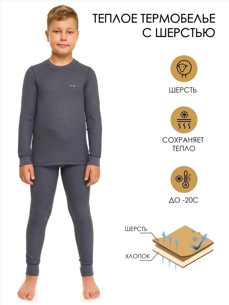 Термокомплект из лонгслива и кальсон выполнен из двухслойного полушерстяного полотна, обеспечивающего повышенную теплосберегаемость. Внутренний слой состоит из хлопка, легко впитывает влагу, не раздражая кожу. Внешний слой из шерсти с акрилом сохраняет тепло и помогает регулировать температуру тела. Эластичное полотно обеспечивает комфорт и свободу движений, обладает гипоаллергенными свойствами. Подходит для ежедневного использования в качестве нательного белья в холодную погоду до -20 градусов при низкой и средней физической активности. Уход: ручная стирка при температуре до 40 градусов без предварительного замачивания.