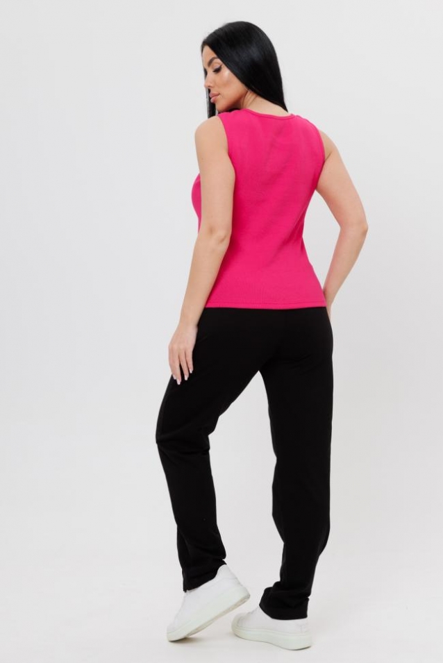 Майка женская сшита из эластичного трикотажа кашкорсе. Майка без рукавов имеет приталенный силуэт, округлый вырез горловины. Приталенная модель подойдет для спорта, отдыха, а также для повседневного ношения. Майка отлично сочетается с джинсами, шортами, юбками. Однотонную базовую майку можно носить с пиджаком, жакетом, олимпийкой. Майка прекрасно подходит для фитнеса и бега, йоги. Майка изготовлена из хлопкового трикотажа с добавлением лайкры, отлично сохраняет свою форму после множества стирок. Хлопковый трикотаж позволяет коже дышать, хорошо отводит влагу.