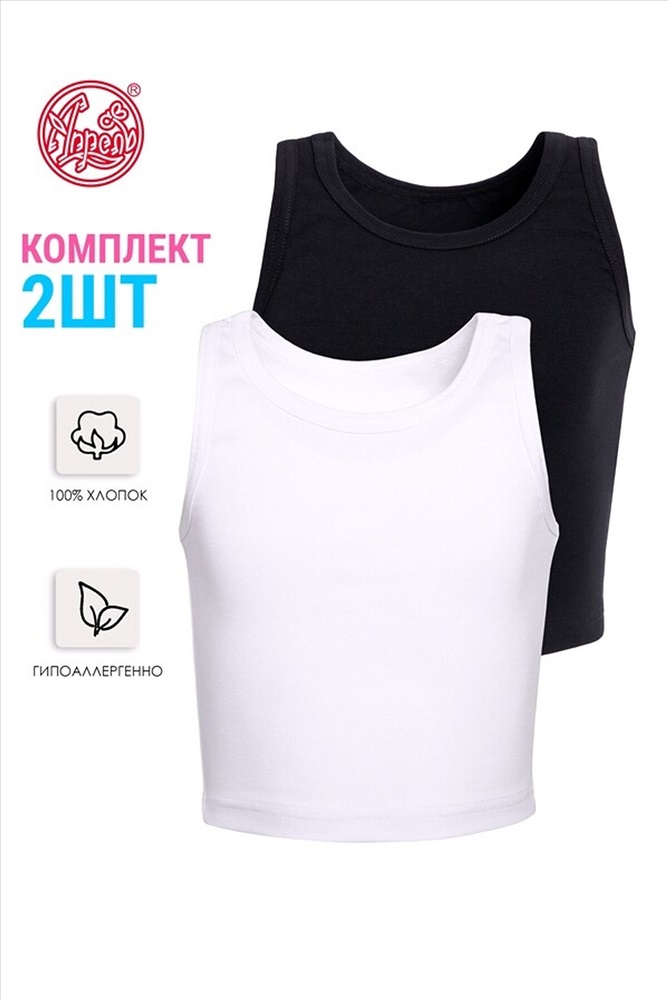 Комплект из двух укороченных топов для девочки выполнен из кулира - тонкого хлопкового полотна с лайкрой. Топ прилегающего силуэта на широких бретелях. Отличный выбор для жаркого летнего дня! Уход: только машинная стирка (руками не стирать!) при температуре 40 градусов, без предварительного замачивания. Материал: кулир с лайкрой