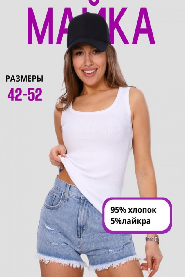 Майка женская из кашкорсе. Пройма и горловина майки обработаны окантовкой, низ подогнут на плоскошовной машине. Идеальный вариант для повседневной носки.