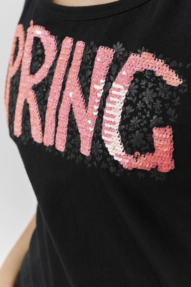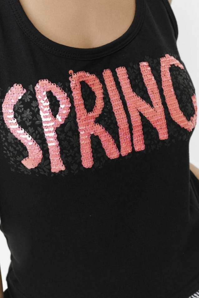 Майка женская полуприлегающего силуэта, оформлена ярким принтом и пайетками.