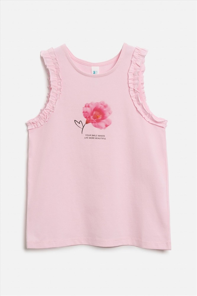 ID товара: 1099029 Состав: 95% Хлопок, 5% Полиуретан Сезон: Весна/Лето Длина: Средняя Фасон: Прямой Рукав: без рукавов Вырез горловины: Округлый Рисунок: цветочный Декоративные элементы: Принт Основная ткань: Хлопок Стиль: повседневный Страна бренда: Россия Страна производства: Китай Майка детская для девочек Kalanta розовый Комментарии к товару