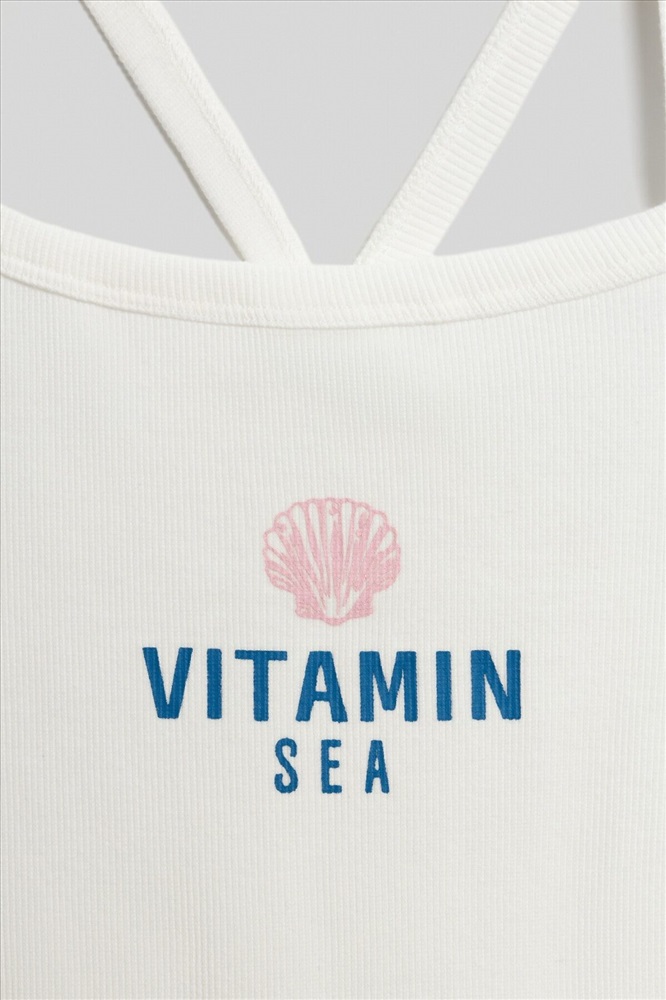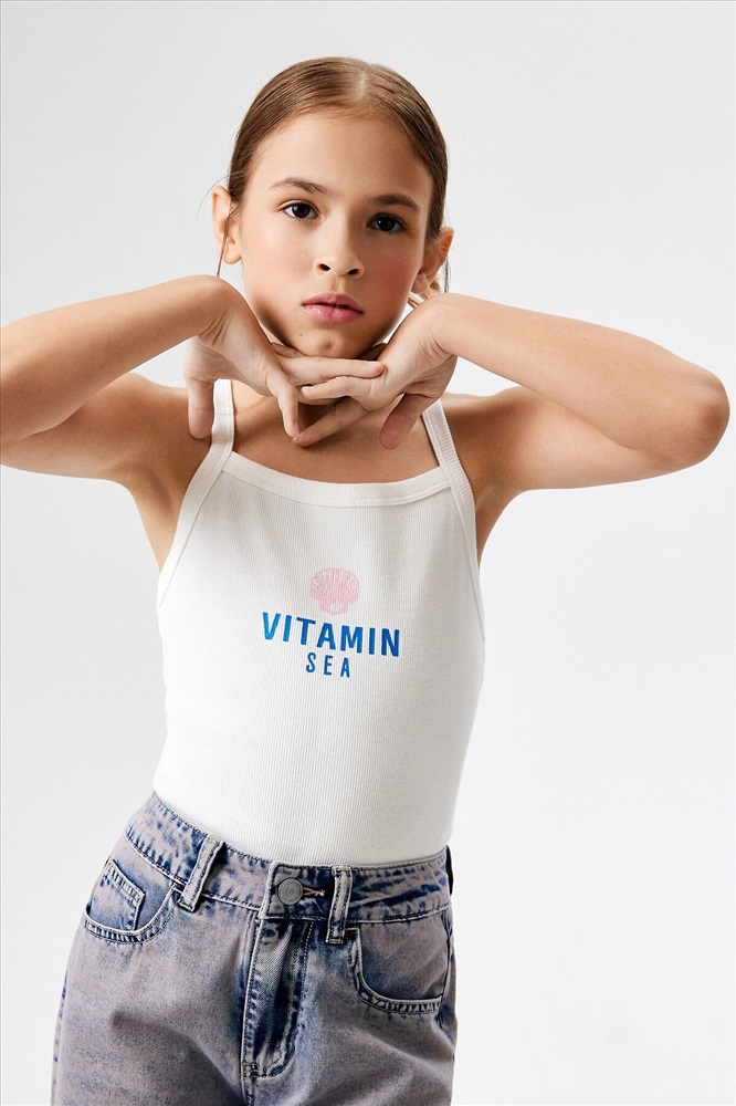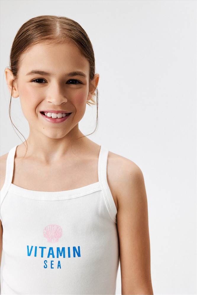 ID товара: 1126127 Состав: 95% Хлопок, 5% ПУ Сезон: Весна/Лето Длина: Средняя Фасон: Облегающий Рукав: Без рукава Рисунок: Надпись Основная ткань: Хлопок Стиль: Повседневный Страна бренда: Россия Страна производства: Китай Детская трикотажная майка в рубчик для девочки станет прекрасным дополнением к гардеробу ребенка для создания повседневных образов. Модель облегающего силуэта подходит для разных типов фигур. Перекрестные бретели на спинке придают изделию акцент, делая его более оригинальным и интересным. Квадратная горловина не мешает при одевании. Спереди футболка декорирована принтом в виде ракушки и надписи "VITAMIN SEA" англ. - "Морская терпапия", которая добавит ребенку позитивный настрой. Изделие представлено в двух цветах: молочном и голубом. Стилизуйте майку с шортами, чтобы создать повседневный образ для прогулок в жаркую погоду. (20244220007) Комментарии к товару