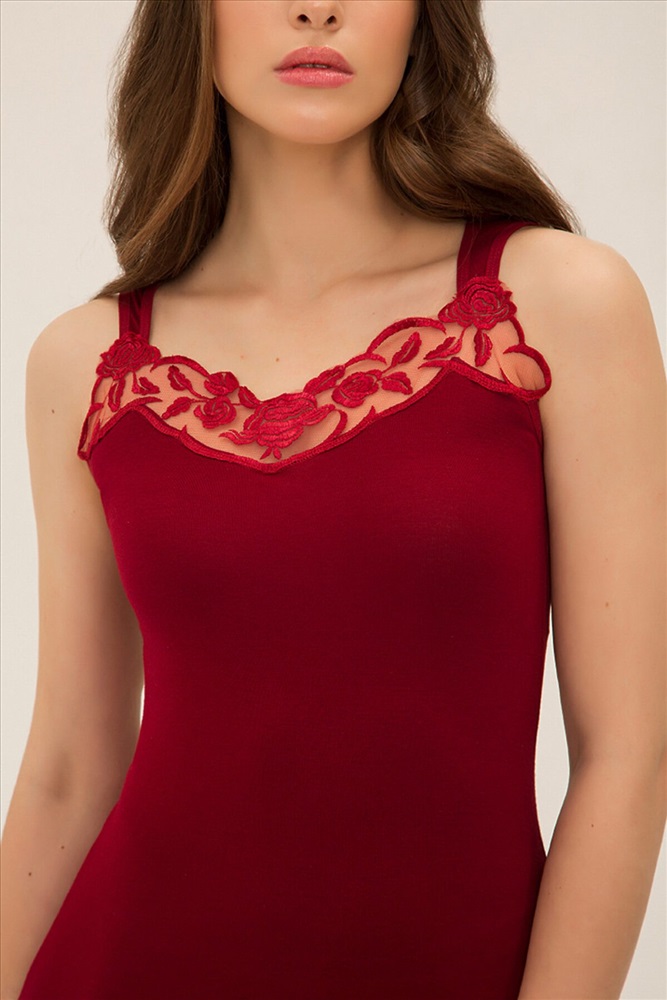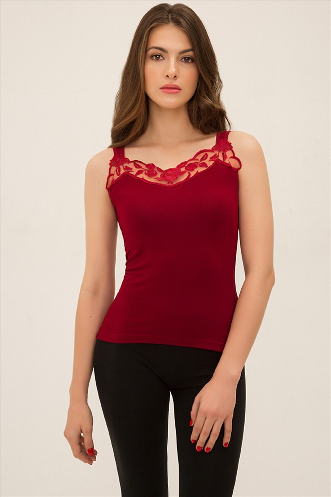 ID товара: 257671 Состав: Вискоза 92%, Лайкра 8% Сезон: Демисезон Длина: Средняя Фасон: Облегающий Рукав: Без рукава Вид застежки: Нет Вырез горловины: V-образный Рисунок: нет Тип карманов: Без карманов Декоративные элементы: Кружево Основная ткань: Вискоза Стиль: Повседневный Страна бренда: Турция Страна производства: Турция Женская бордовая майка на тонких бретелях с кружевными вставками. Комментарии к товару