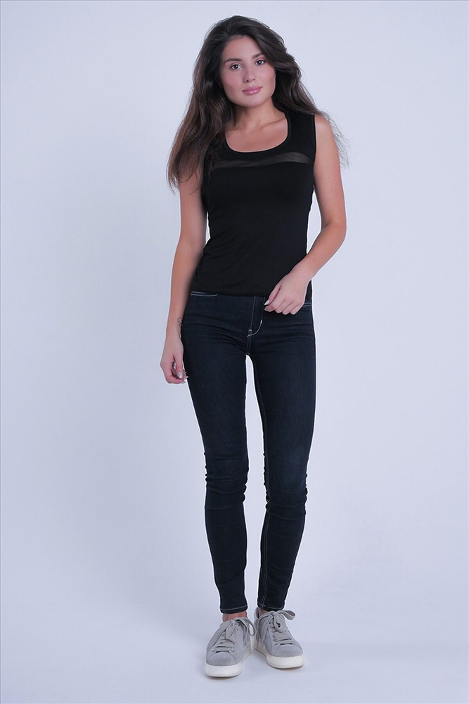 Женская майка с прозрачной вставкой.