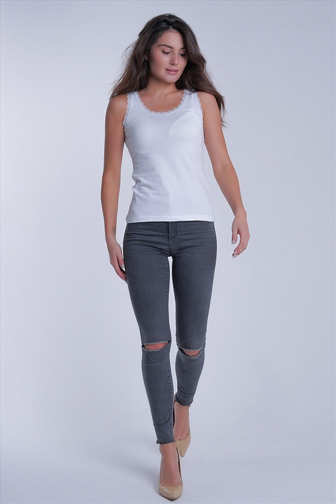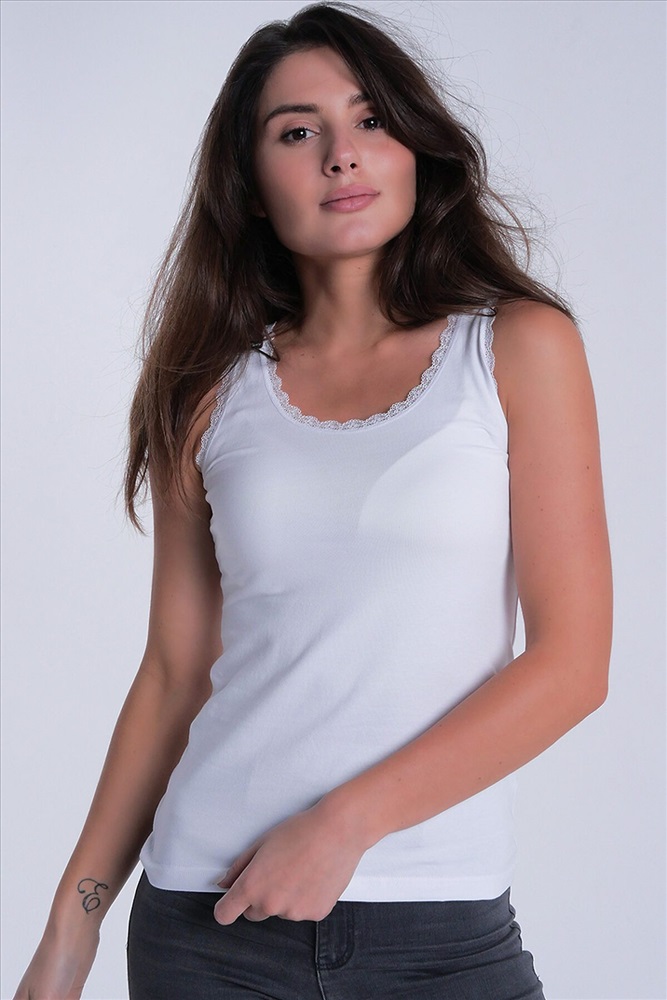 ID товара: 258328 Состав: Хлопок 90%, Лайкра 10% Сезон: Демисезон Длина: Средняя Фасон: Облегающий Рукав: Без рукава Вид застежки: Нет Вырез горловины: Круглый Рисунок: нет Тип карманов: Без карманов Декоративные элементы: Рюши Основная ткань: Хлопок Стиль: Повседневный Страна бренда: Турция Страна производства: Турция Женская белая майка на бретелях. Комментарии к товару