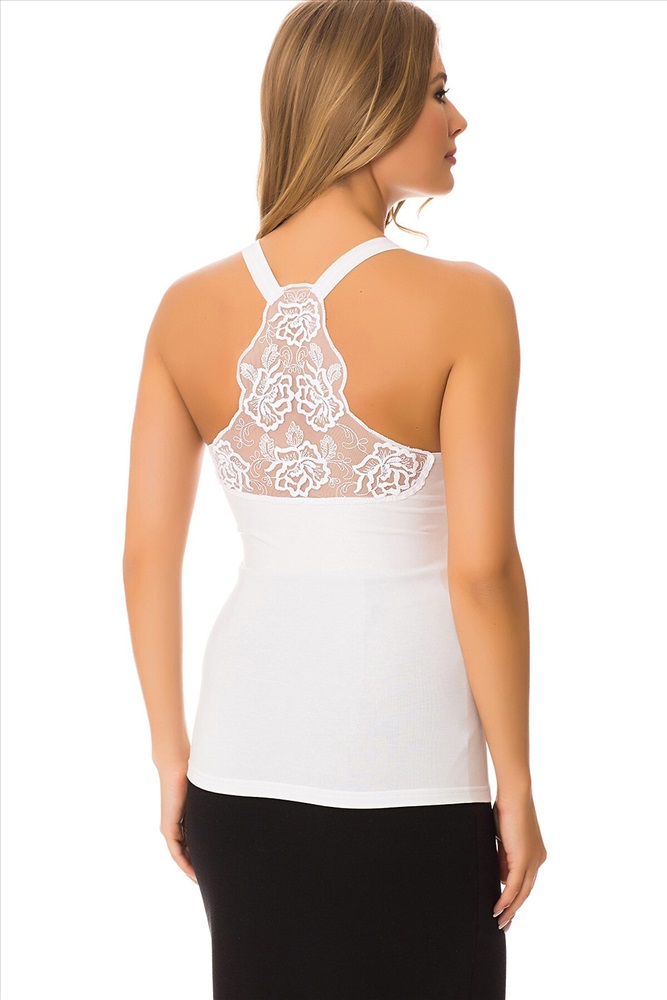 Страна производства: Турция Майка облегающего кроя на тонких лямках, с ажурной вставкой на спинке.