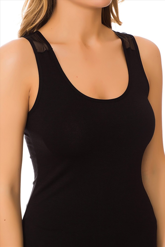 ID товара: 64512 Состав: Модал 75%, Полиамид 15%, Лайкра 10% Сезон: Весна/Лето Длина: Средняя, 56 см. по спинке Фасон: Облегающий Рукав: Без рукава Вид застежки: Нет Страна бренда: Турция Страна производства: Турция Базовая майка на широких лямках с круглым вырезом горловины. Комментарии к товару