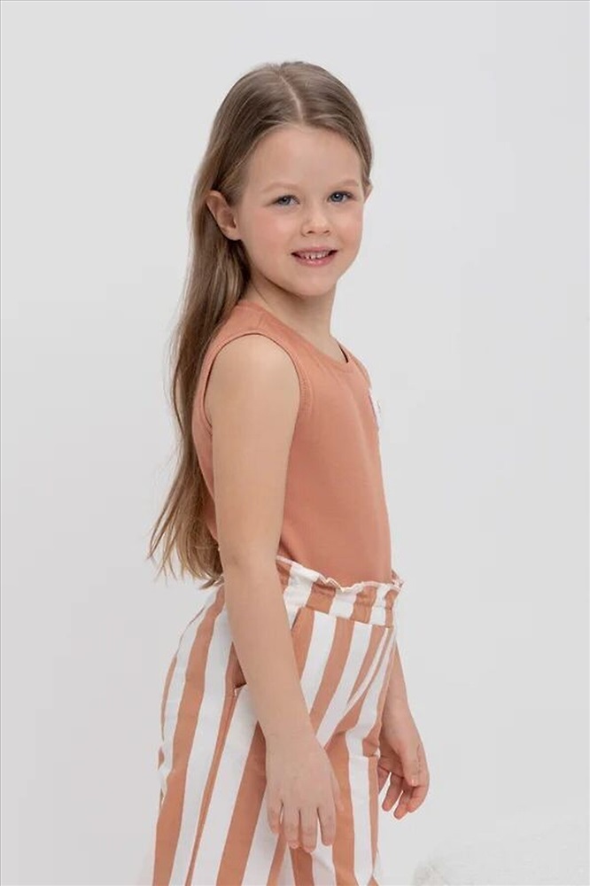 Трикотажная майка для девочки из эластичного полотна в рубчик.