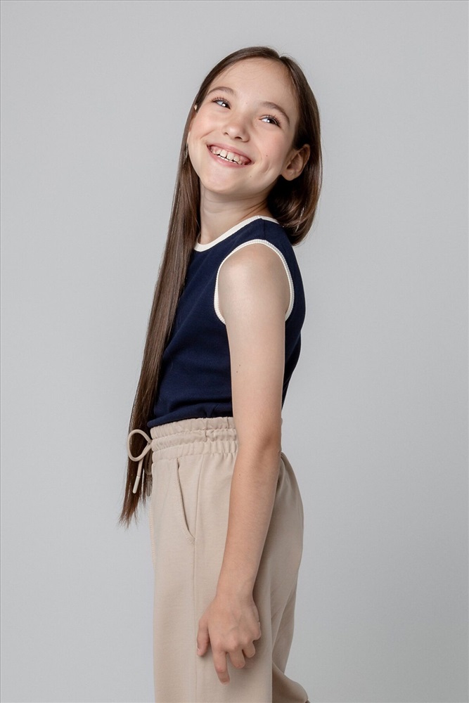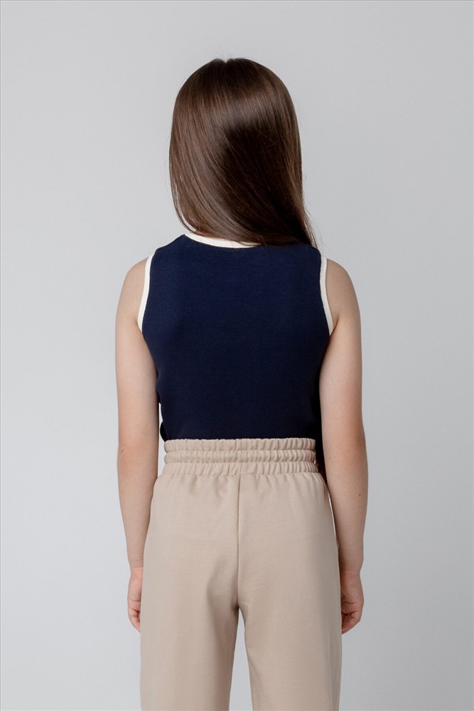 Трикотажная майка для девочки из эластичного полотна в рубчик.
