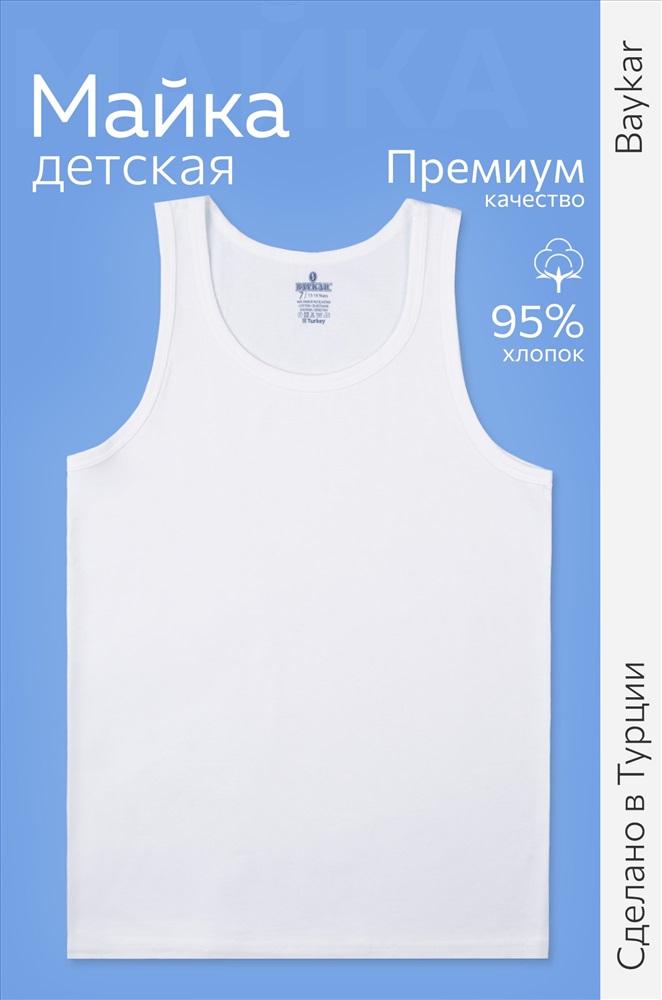 Комфорт в каждом движении! Детская бельевая майка для мальчиков и мальчиков-подростков выполнена из дышащего хлопка. Майка для детей представлена в базовом белом цвете. Классическая майка на широких бретелях не стесняет движений благодаря свободному крою.