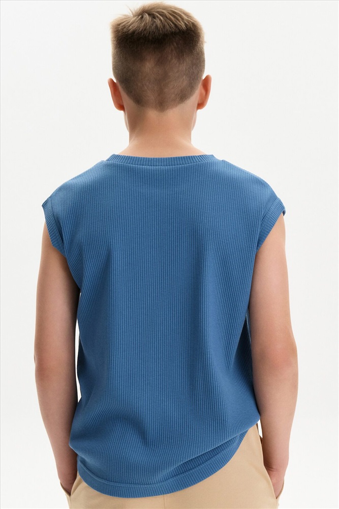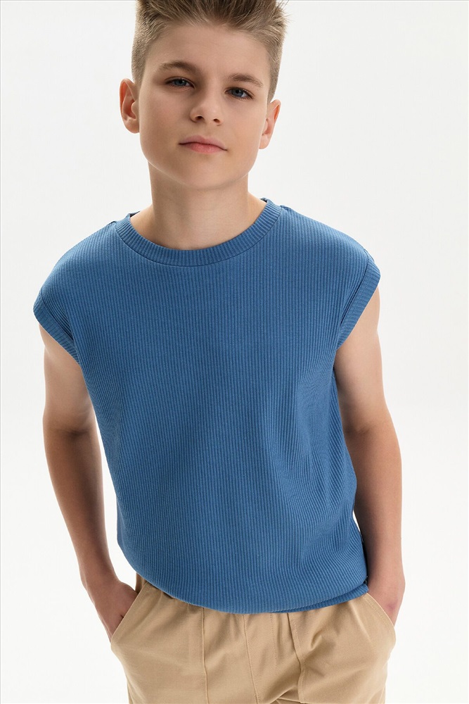 Майка летняя в рубчик для мальчика. Однотонная яркая футболка без рукавов свободного кроя станет отличным вариантом летней одежды для вашего малыша или подростка. Подойдет для занятий спортом, походов летом на пляж и просто прогулок.