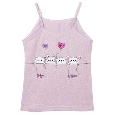 Майка на узких бретелях, декорированная принтом.