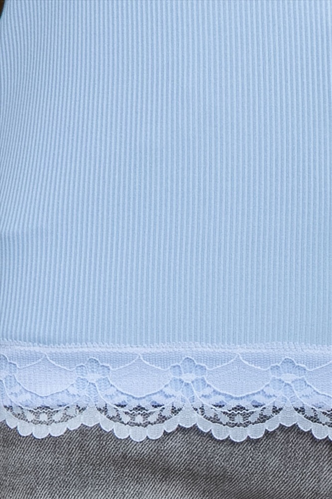 Состав: 65% полиэстер, 30% вискоза, 5% эластан. Материал: трикотаж "Лапша". Цвет: голубой. Принт: отсутствует. Силуэт: приталенный. Карманы: отсутствуют. Подкладка: отсутствует. Вид застежки: без застёжки. Декоративные элементы: отсутствуют. Длина: 44-48/ 59 см, 50/ 60 см.