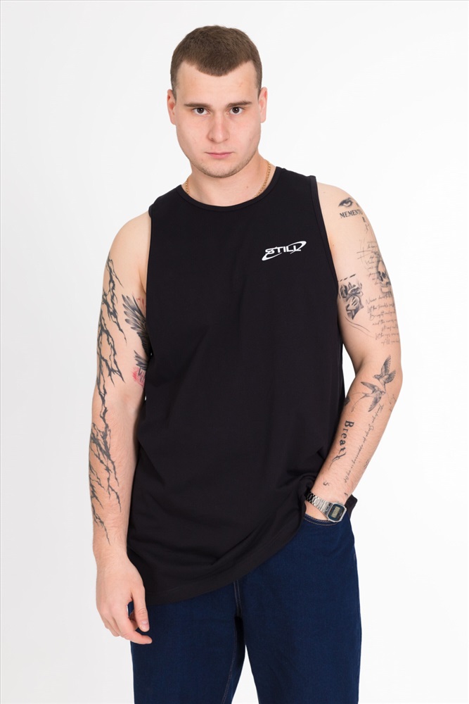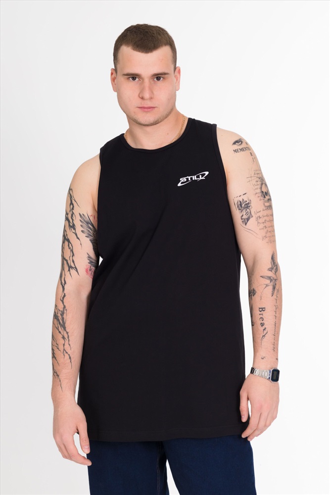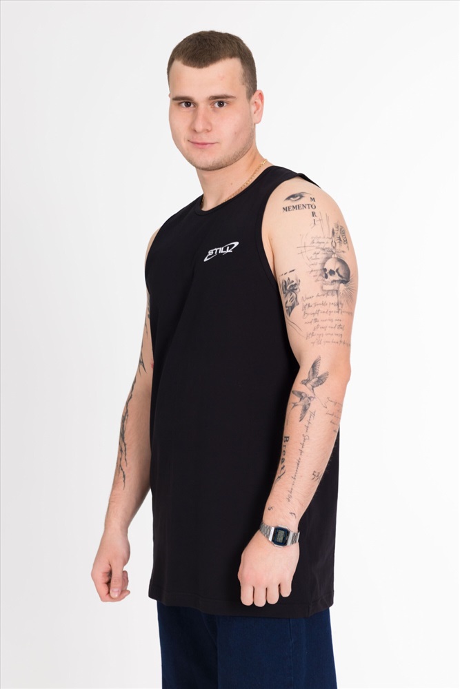 Сезон: Всесезонный Силуэт: Свободный Состав: Хлопок 100% Цвет Номенклатуры: черный Майка выполнена из однотонной кулирки. Майка с углубленной проймой, спереди нанесён принт. Комментарии к товару