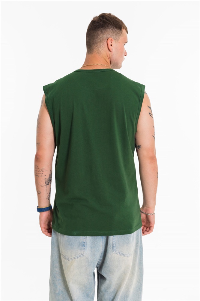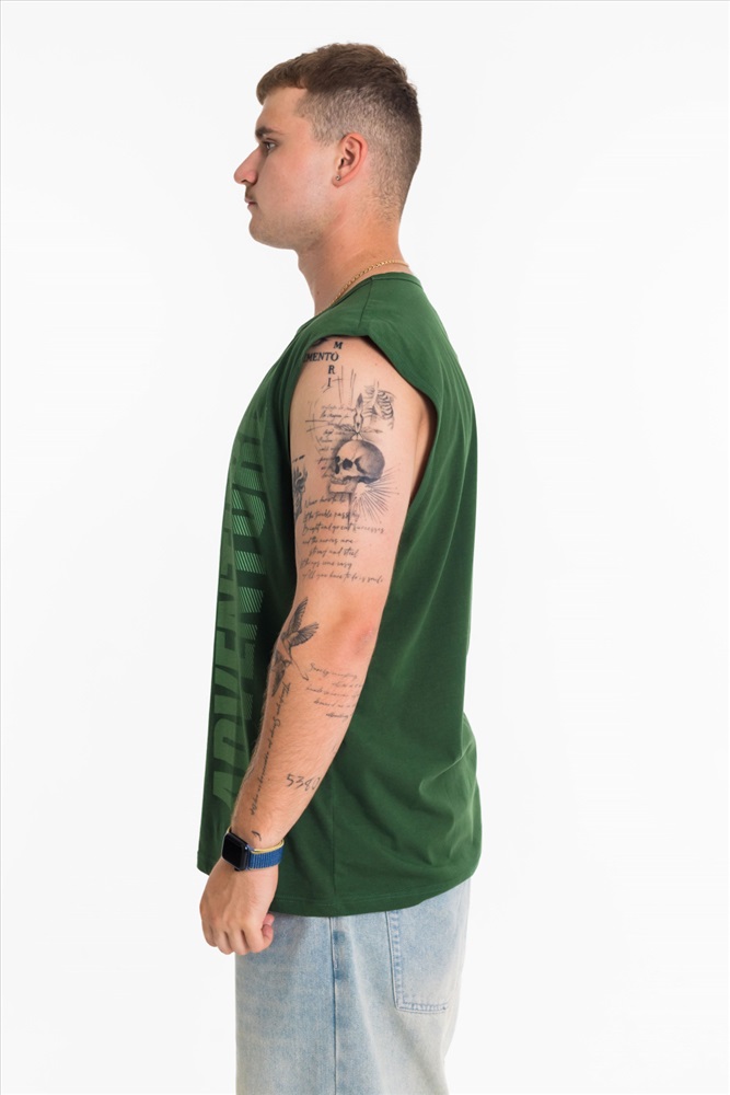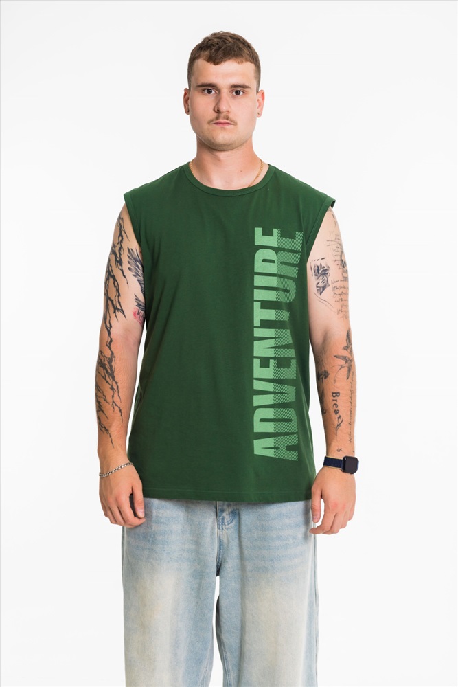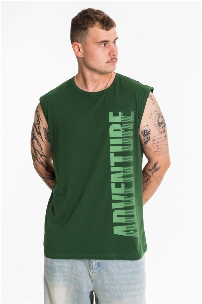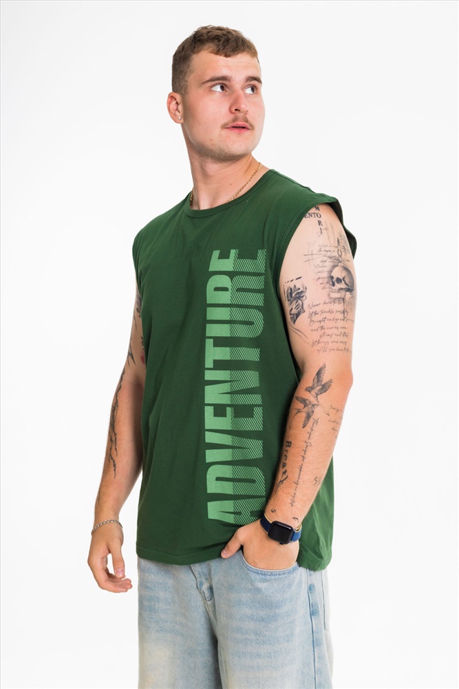 Сезон: Всесезонный Силуэт: Прямой Состав: Хлопок 100% Цвет Номенклатуры: хаки Майка с широким плечом выполнена из однотонной кулирки, 100% хлопок. Круглая горловина и проймы обработаны широкой бейкой. Спереди расположен принт. Комментарии к товару