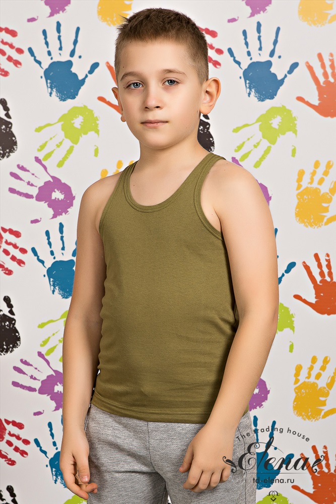 Сезон: Всесезонный Силуэт: Прямой Состав: Хлопок 100% Цвет Номенклатуры: хаки Детская майка из 100% хлопка. Комментарии к товару
