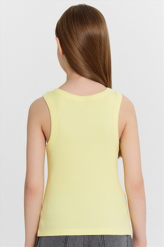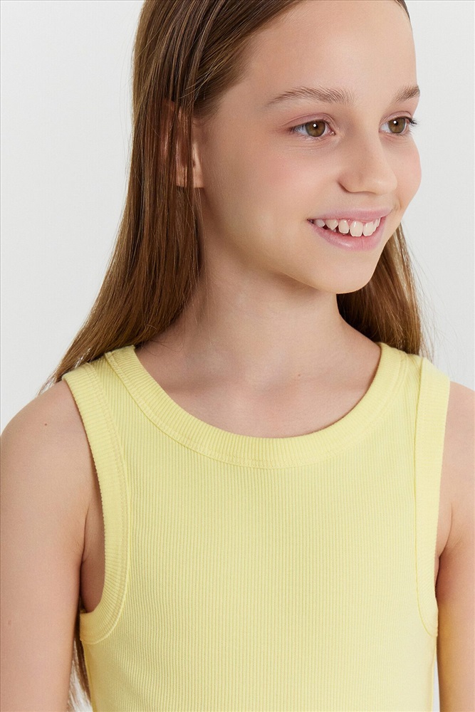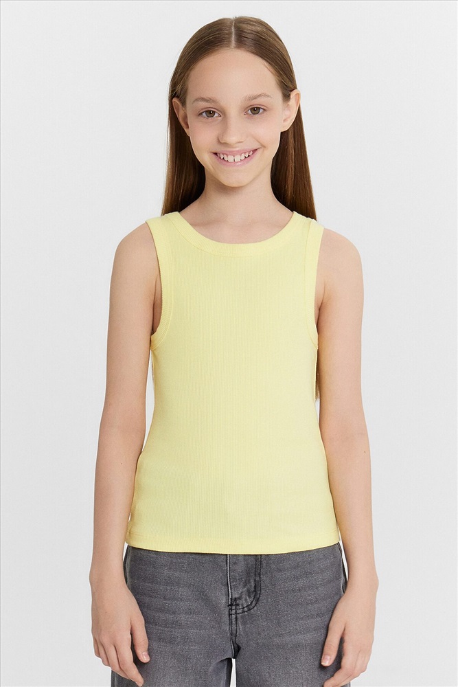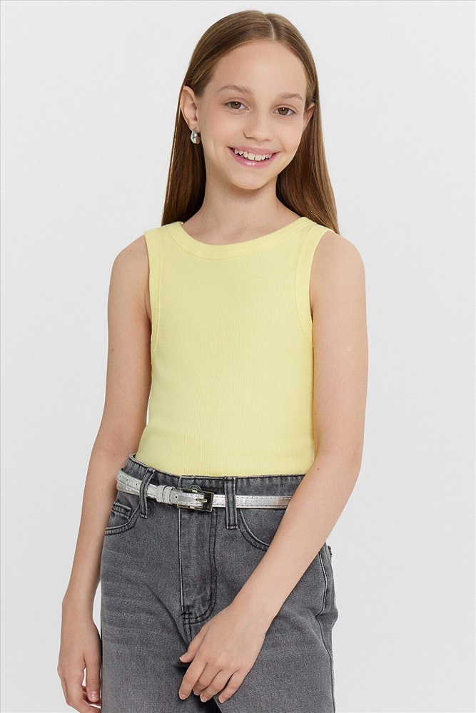 ID товара: 1119517 Состав: 96% Хлопок; 4% Эластан Сезон: Весна/Лето Длина: Средняя Фасон: Облегающий Рукав: без рукавов Вырез горловины: Круглый Основная ткань: Хлопок Стиль: Повседневный Уход: Деликатная стирка при 30 градусах Фактура материала: Рибана Страна бренда: Беларусь Страна производства: Беларусь Топ для девочек из рибаны, облегающего силуэта, длиной ниже уровня талии. Перед и спинка цельнокроеные. Горловина круглая. Горловина и проймы окантованы широкой бейкой из основного полотна. Низ изделия обработан швом в подгибку. Комментарии к товару