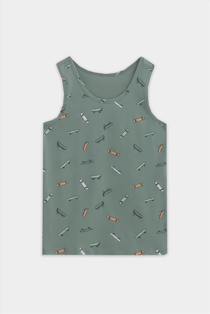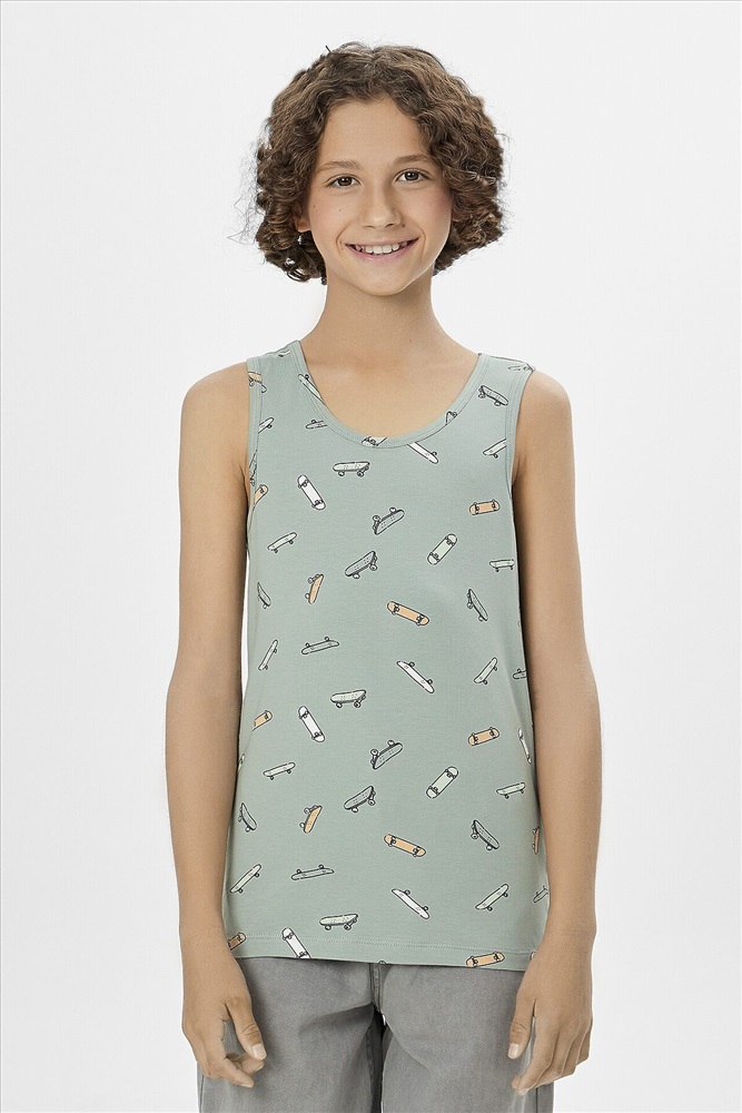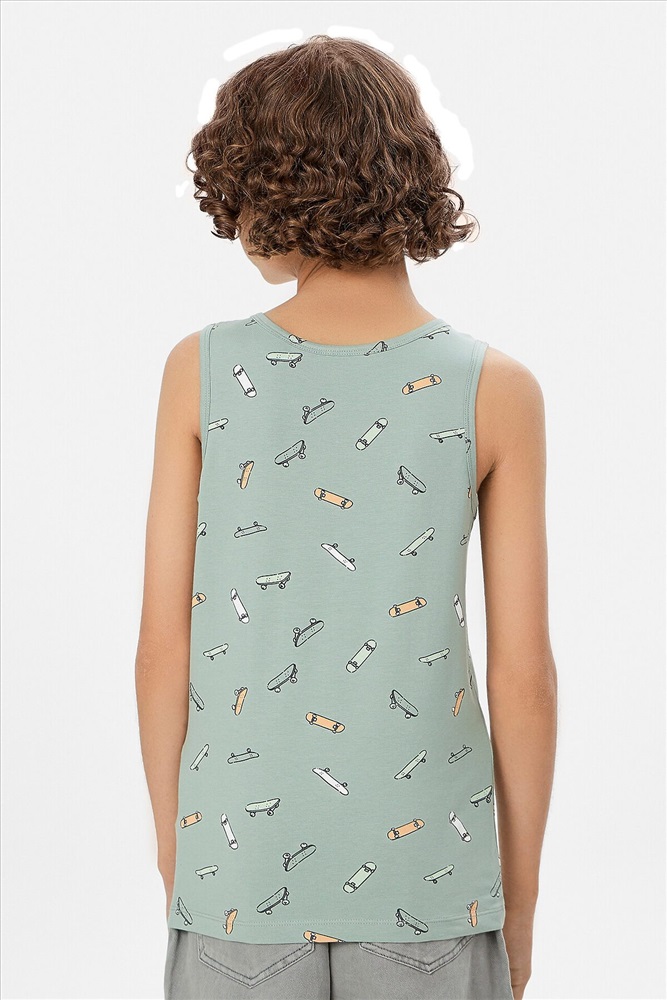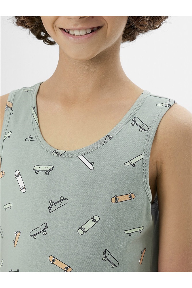 Комфортная хлопковая майка из трикотажной кулирки. Силуэт полуприлегающий, длина до середины бедер. Горловина и пройма расширены и углублены, а также обработаны мягкой бейкой. Именно такую майку вы искали для своего мальчика!