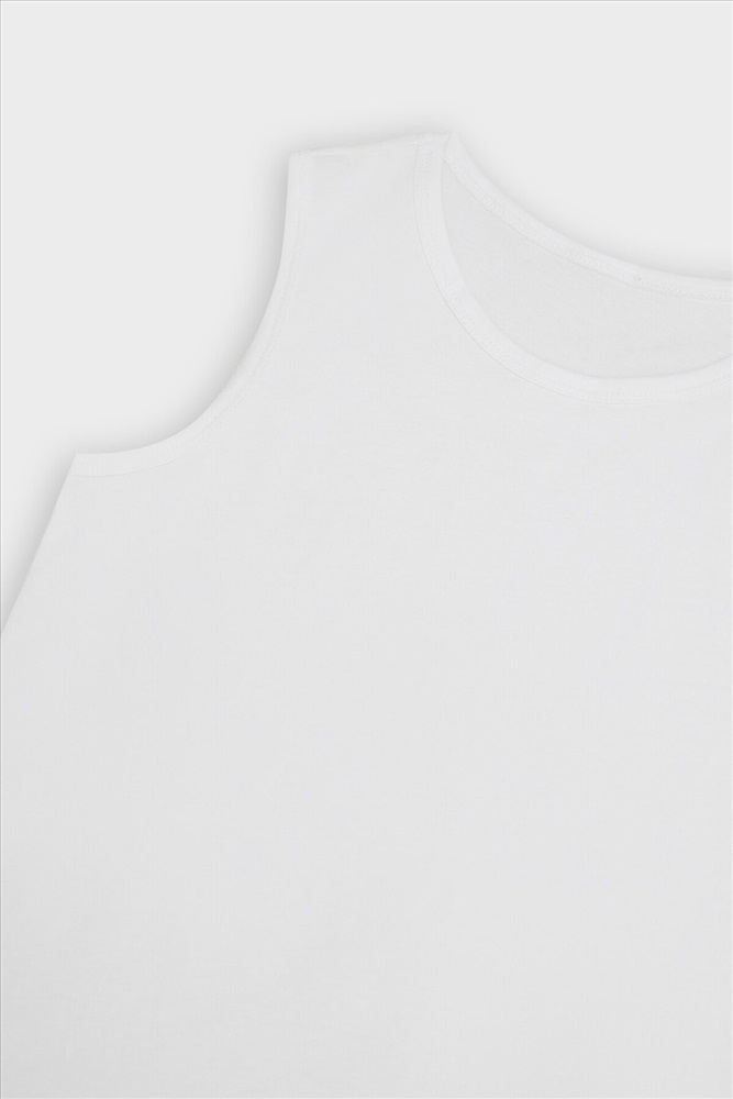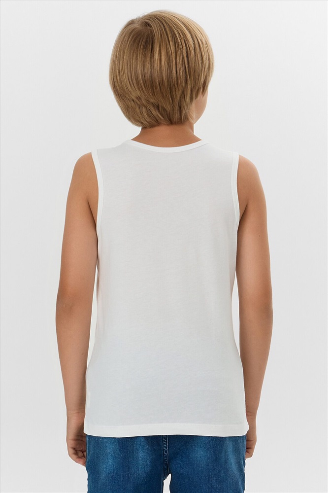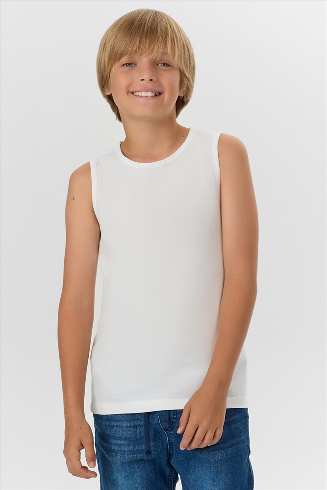 Майка полуприлегающего силуэта из хлопковой трикотажной кулирки. Длина до середины бедер. Горловина круглая, окантована мягкой бейкой. Нижний срез обработан плоским швом. Комфортная классика для вашего мальчика!