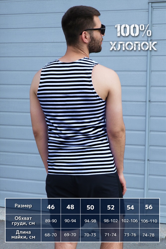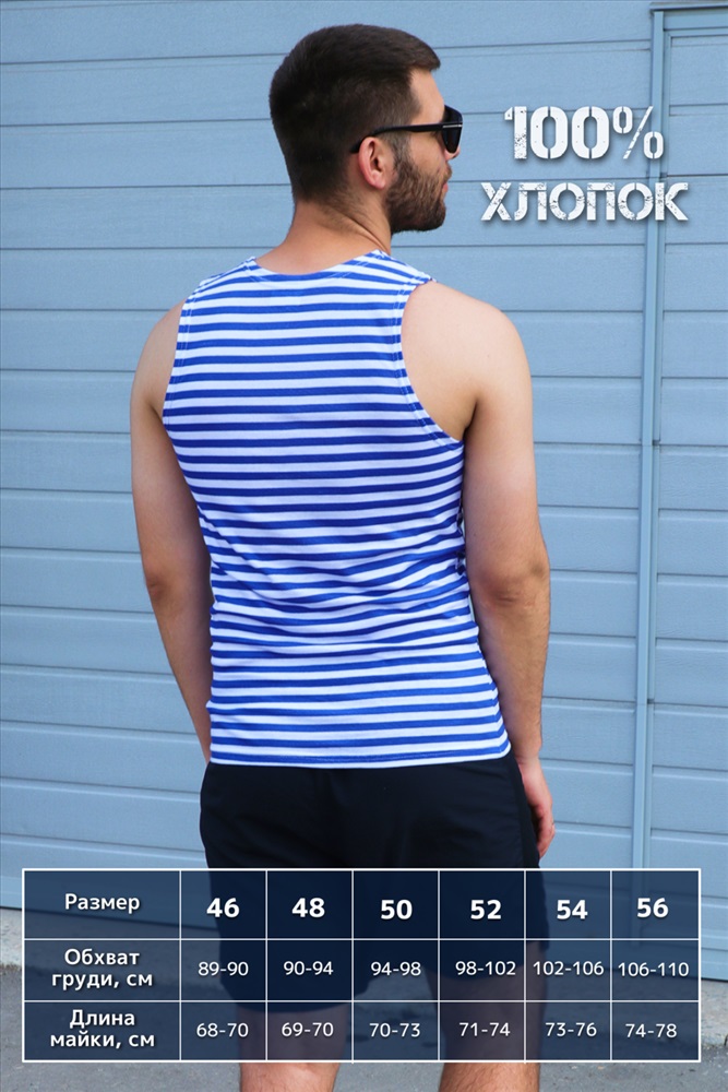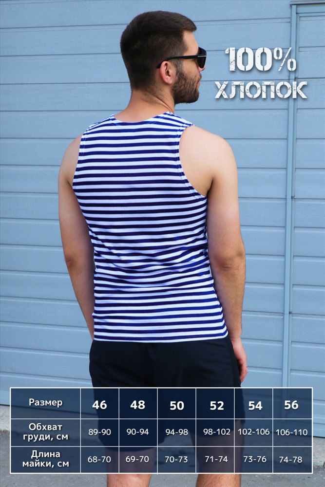Состав: 100% хлопок Модель: Майка тельняшка мужская GL823 Тип товара: майка Материал: кулирка | кулирка Бренд: Глобал Текс Длина: средняя длина Назначение: для дачи | для дома | для пляжа Рисунок: полоска Рукав: без рукава Сезонность: лето | осень | весна | зима Силуэт: прямой Скидка: любая | от 10% и больше | от 30% и больше Стиль: домашний | пляжный 1. Описание: Мужская майка-тельняшка из ткани кулир с лайкрой, которая почти невесома и при этом очень эластична. 2. Размерный ряд: от 46 до 56. 3. Состав: 100% хлопок. 4. Особенности: Свободный крой, удобная посадка, не стесняет движений. 5. Назначение: Для дома и дачи, для прогулок на свежем воздухе и путешествий, можно носить как пижамную майку. 6. Рекомендации по уходу: стирать при температуре 30-40 градусов без отбеливателя, гладить с изнаночной стороны при температуре до 60 градусов, сушить в расправленном состоянии. Таблица размеров и веса