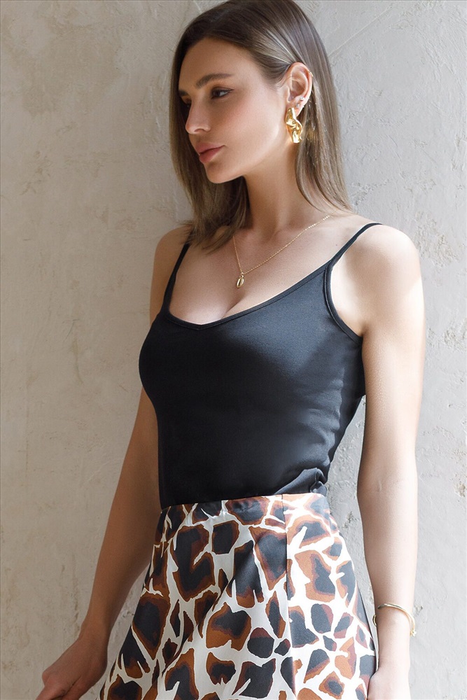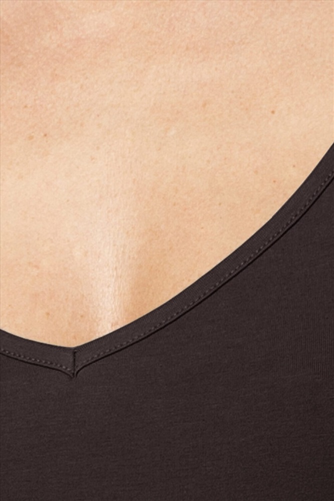 Топ с V-вырезом выполнен из премиального хлопка. Модель дополнена регулируемыми бретелями, позволяющими носить изделие на нужном уровне. Эластичный материал гарантирует комфорт и формоустойчивость. Из украшений металлический логотип бренда.
