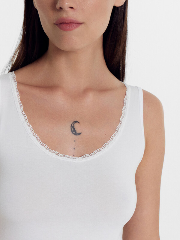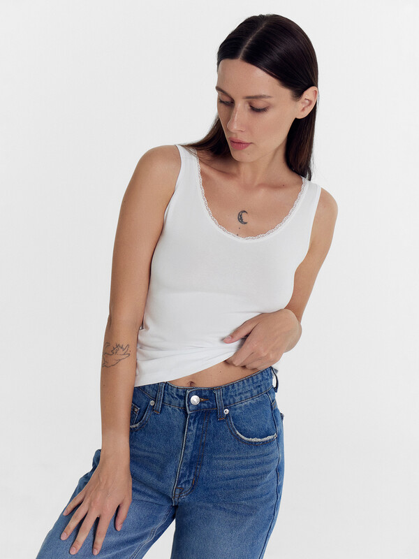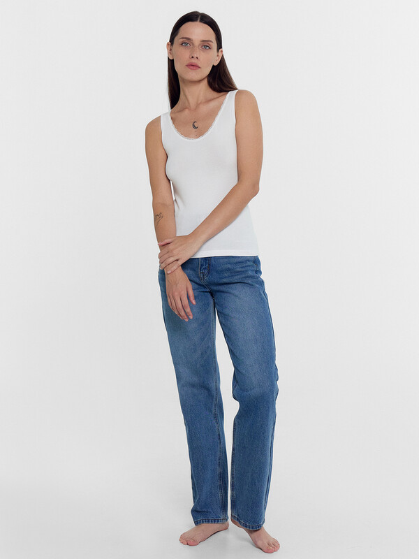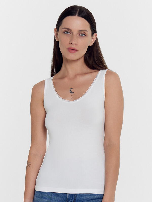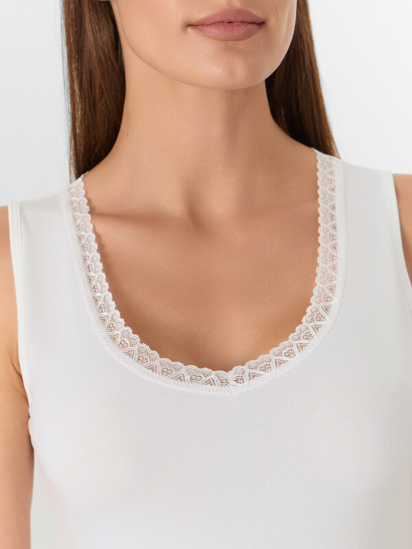 Производитель: Mark Formelle Майка прилегающего силуэта из хлопка. Горловина обработана узким эластичным кружевом. Длина классическая. Рекомендуем!