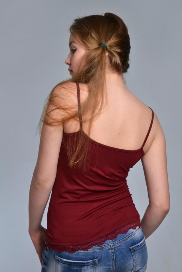 Майка женская АЛИСА- облегающая вискозная с тонким бретелями, тонким кружевом на лифе.