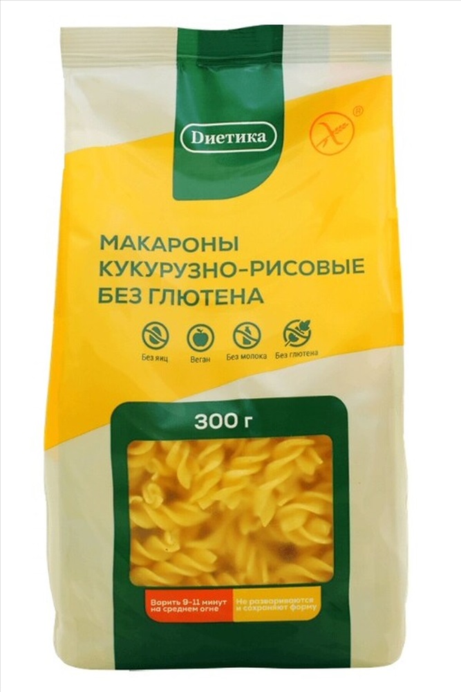 ID товара: 1136934 Состав: кукурузная мука, рисовая мука, кукурузный крахмал, вода питьевая Сезон: Демисезон Производитель: Диетика Срок годности (мес): 24 Вес: (г), 300 Страна бренда: Россия Страна производства: Россия Макароны Спираль кукурузно-рисовая "Диетика" 300г Комментарии к товару