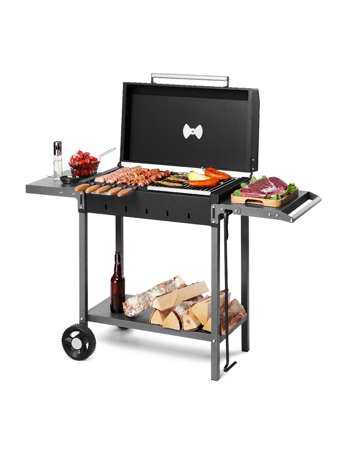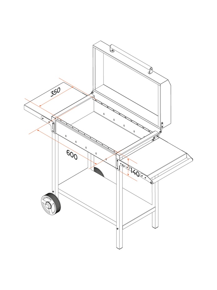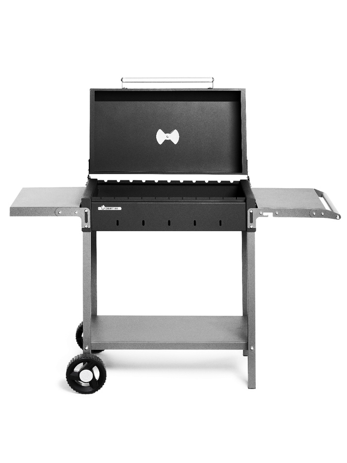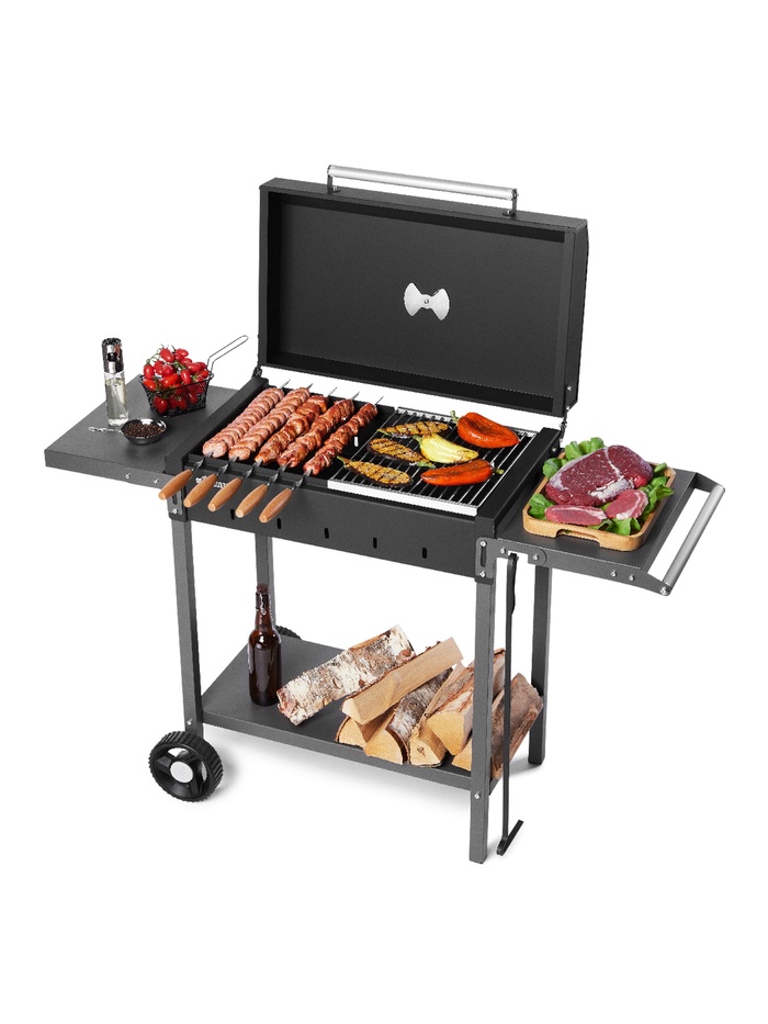 Габариты: 78 x 40 x 32 Доставка: Платная Страна: Россия В боксе: 1 шт Состав: Металл Материалы: металл Фасовка: по 1 шт Индивидуальная упаковка: Картонная коробка / упаковка Сертификат: Не подлежит сертификации Толщина металла, мм: 2 Высота жаровни, см: 14 Ширина жаровни, см: 39 Высота от пола до дна жаровни, см: 62 Длина жаровни, см: 67,6 Материал: Металл Особенности: С крышкой, С полкой/столиком, С ручкой, С колёсами Мангал «MAH 203» – надёжный гриль-мангал из толстой стали, предназначенный для приготовления мяса, овощей и других блюд на углях или дровах. Прочная конструкция, функциональность и продуманная комплектация делают его отличным выбором для дачи, частного дома и отдыха на природе. Топка изготовлена из стали толщиной 2 мм и выдерживает дровяную растопку. Рабочая зона шириной 60 см рассчитана на размещение до 11 шампуров и позволяет приготовить до 2,5 кг мяса за один раз. Мангал оснащён крышкой с термоизолированной ручкой, двумя боковыми полками для удобного размещения продуктов и инструментов, а также колёсами для лёгкого перемещения.