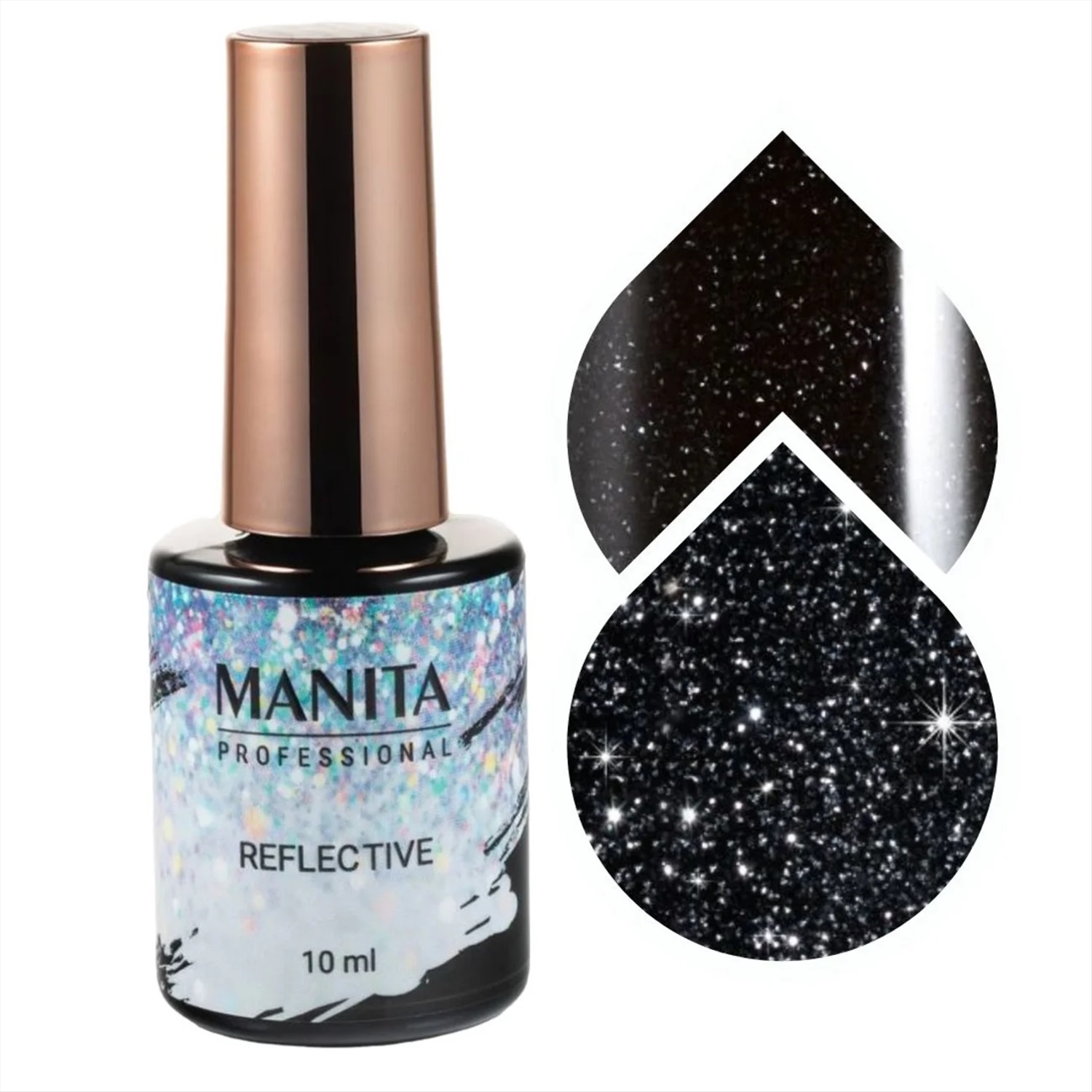Светоотражающие гель-лак для ногтей Reflective от Manita Professional — это коллекция гель-лаков с невероятным сиянием мелких блесток и мерцающих частиц при любом освещении, а при вспышке или попадании прямого солнечного света или света от лампы этот эффект усиливается в десятки раз.
