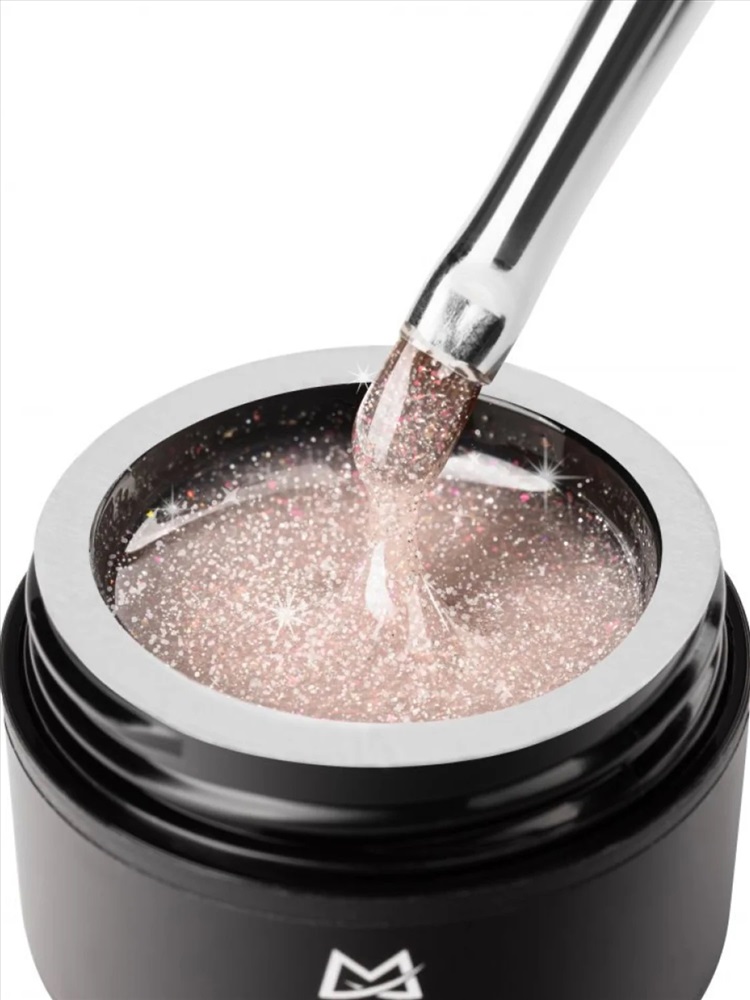 Идеальное сочетание прочности моделирующего геля и эффектного сияния. Builder Gel Flash с голографическими хлопьями юки создаёт многомерный блеск и визуальную глубину маникюра, делая дизайн выразительным и премиальным.
