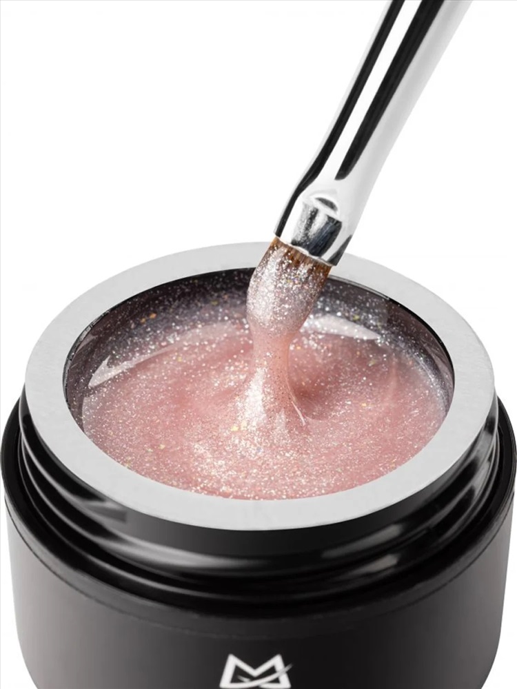 Элегантное сияние, вдохновлённое лунным светом. Builder Gel Moonlight с голографическими хлопьями юки и серебряными частицами создаёт холодное, многомерное свечение, подчёркивая форму ногтей и придавая маникюру утончённый премиальный вид.