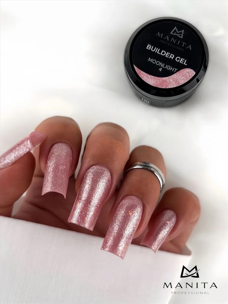 Элегантное сияние, вдохновлённое лунным светом. Builder Gel Moonlight с голографическими хлопьями юки и серебряными частицами создаёт холодное, многомерное свечение, подчёркивая форму ногтей и придавая маникюру утончённый премиальный вид.