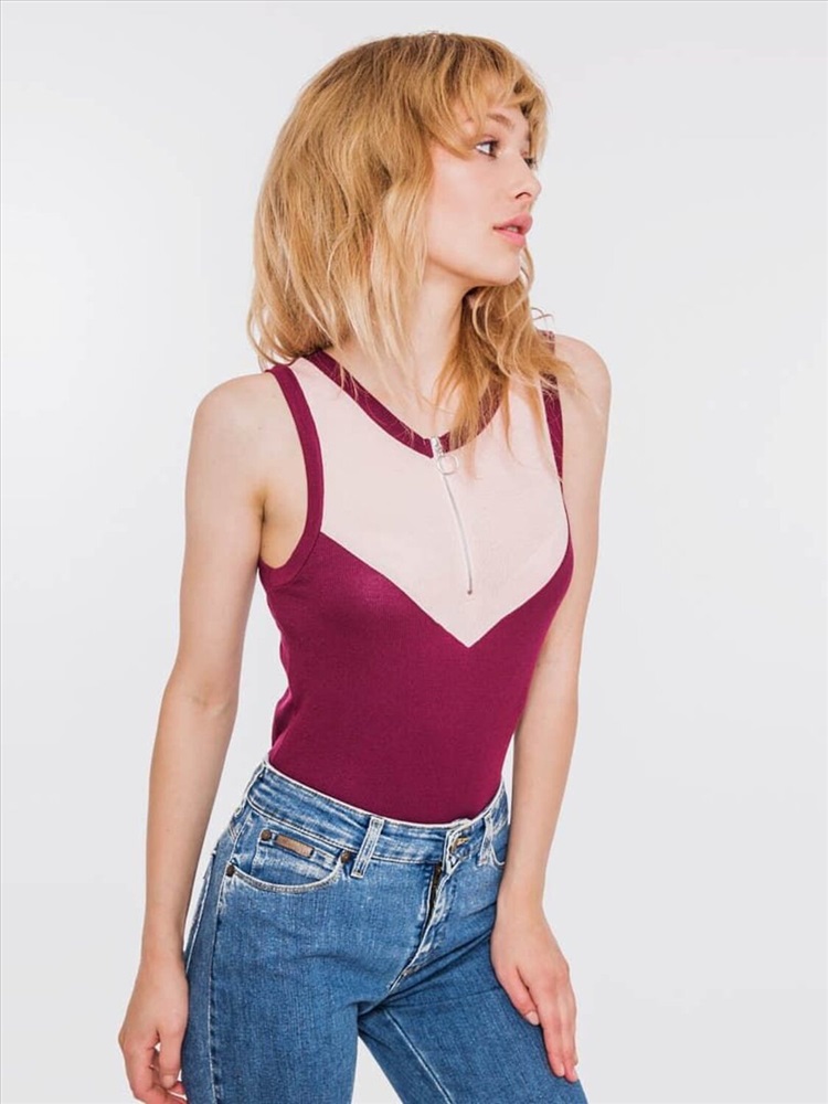 Эффектный комбидрес из трикотажного полотна рибана. Силуэт прилегающий. Застегивается на кнопки. Спереди – кокетка с с застежкой-молнией. Отличный вариант для множества стильных ситуаций и образов!