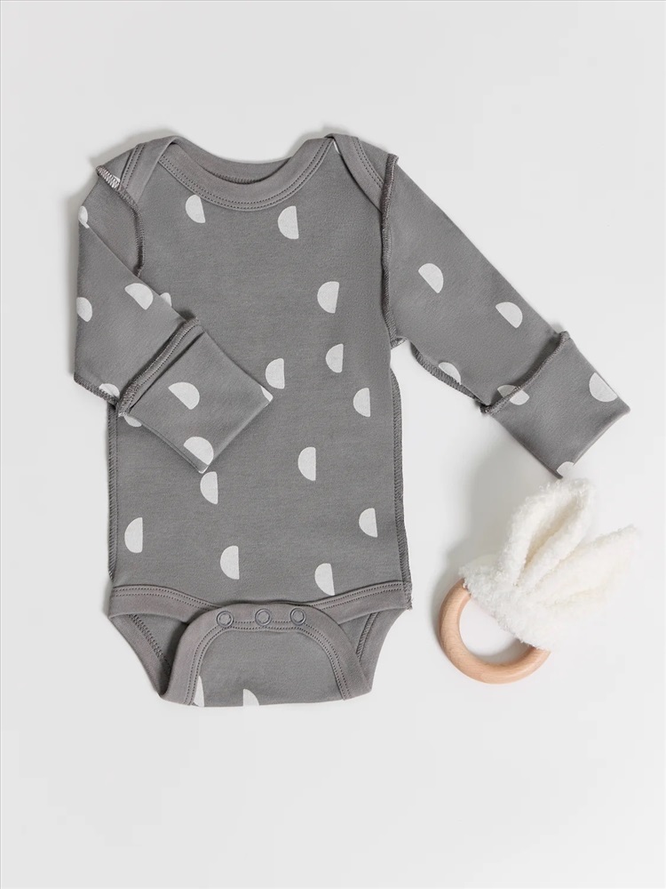 Детское боди из интерлока — это мягкая и комфортная модель, идеально подходящая для новорожденных. Интерлок — плотный хлопковый трикотаж с гладкой поверхностью с обеих сторон, который хорошо сохраняет тепло, не раздражает кожу и обеспечивает приятные тактильные ощущения. Конструкция изделия продумана до мелочей: спинка и перед цельнокроеные, что минимизирует количество швов, а сами швы выведены на лицевую сторону, чтобы внутренняя поверхность оставалась максимально гладкой. Спинка дополнена переходящей кокеткой и цельнокроенной ластовицей, что делает посадку особенно удобной. Круглая горловина оформлена аккуратно, а длинные рукава снабжены царапками, защищающими ручки малыша. Нижняя часть фиксируется на три книппера, что упрощает переодевание и смену подгузника. Такое боди — отличный выбор для первых месяцев жизни, когда особенно важны мягкость, безопасность и удобство.