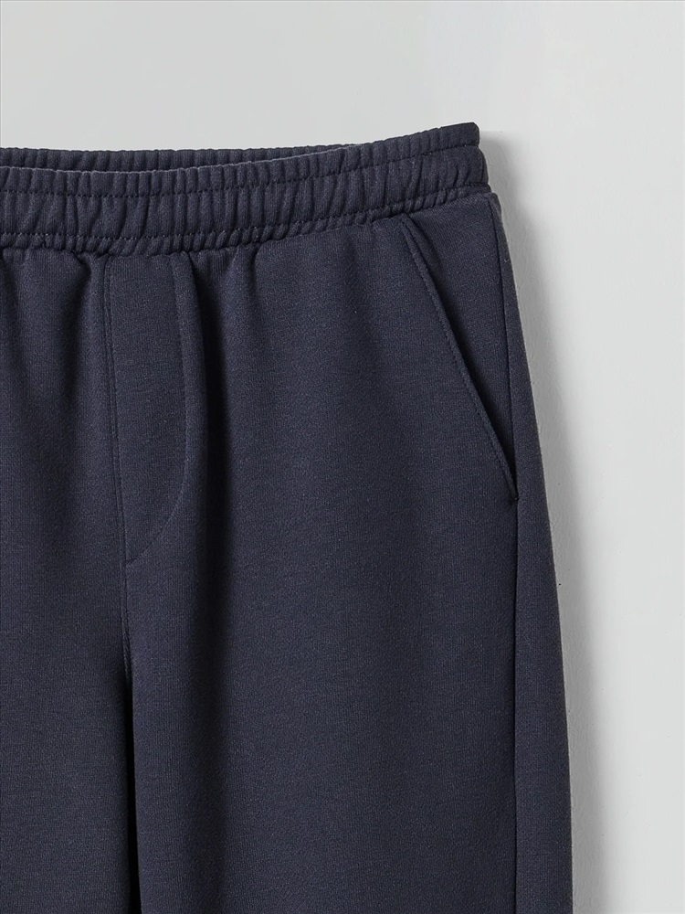 Брюки-джоггеры для мальчиков. Пояс отрезной с втачной эластичной тесьмой, внутри шнур. Пояс прострочен двумя отделочными строчками. По переду обработаны карманы с отрезным бочком. Низ брюк застрочен с эластичной тесьмой на двухигольной плоскошовной машине.