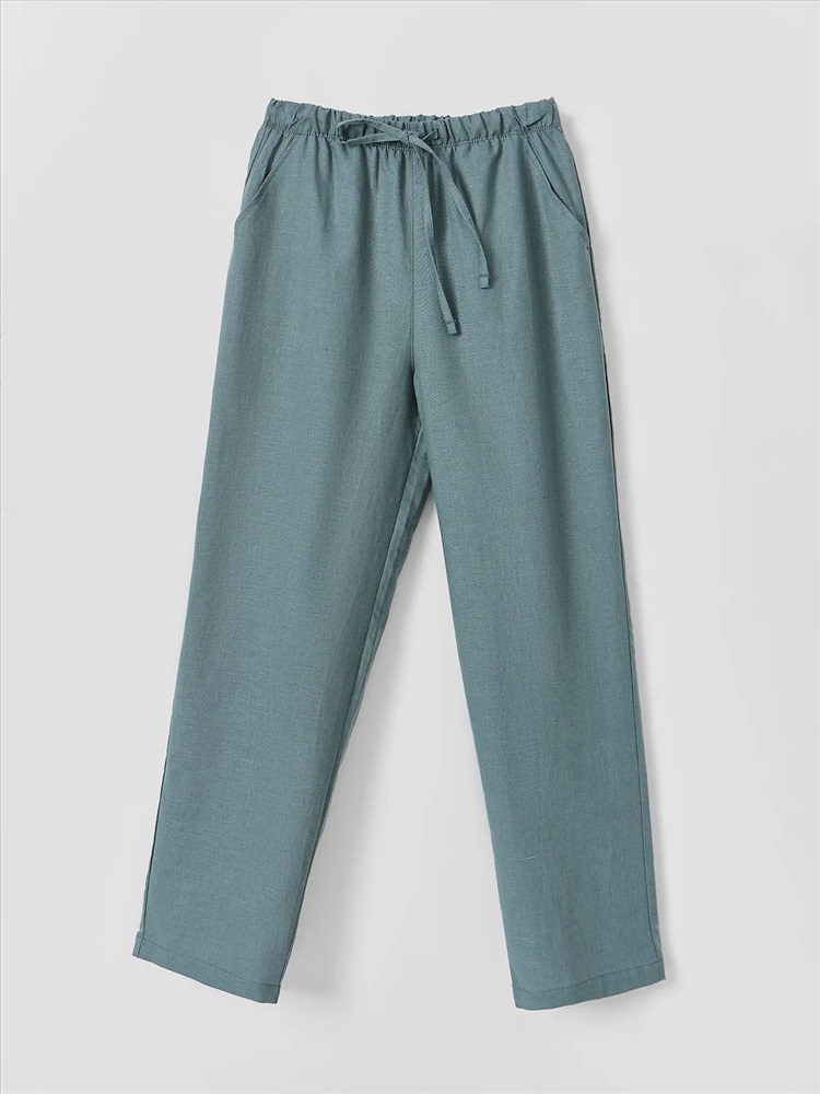 Низ брюк обработан швом в подгибку.