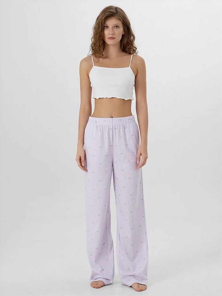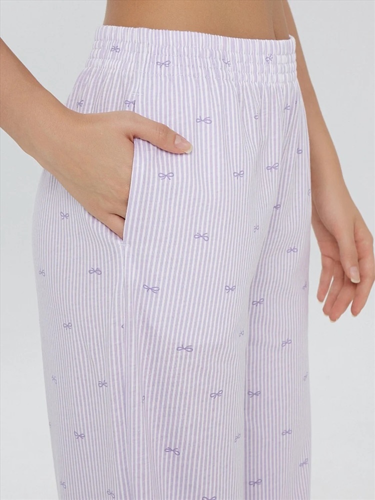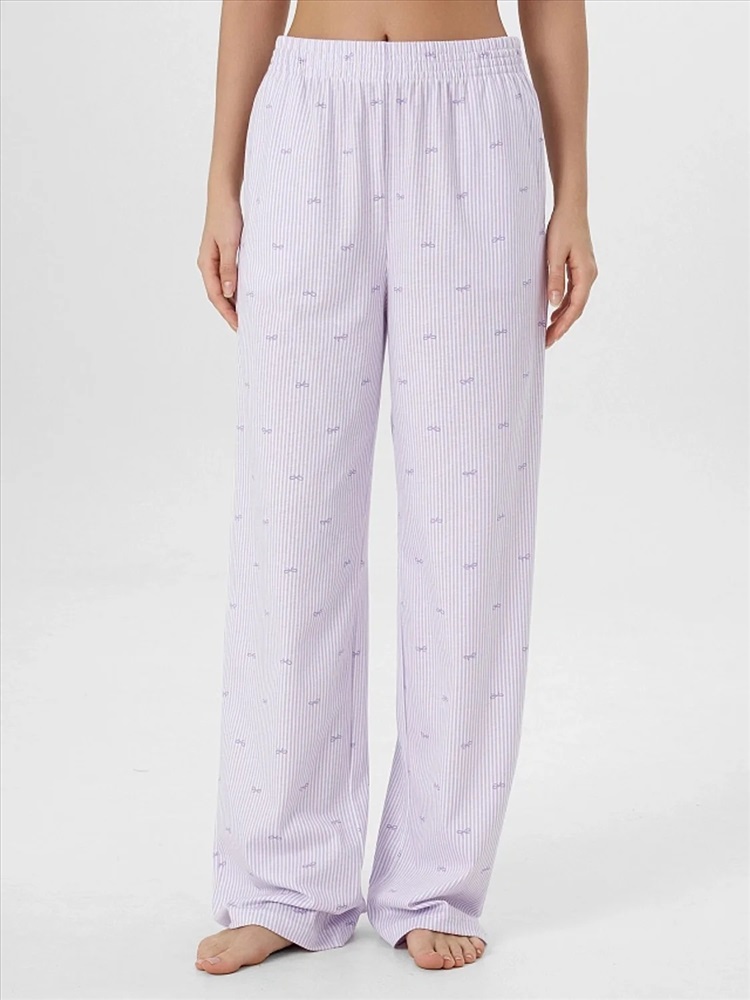 Благодаря свободному крою и эластичному поясу брюки подойдут для любой фигуры. Нежный оттенок с игривым принтом добавит нотку женственности вашему домашнему образу. Это не просто удобная домашняя одежда, а стильный элемент гардероба, который подарит ощущение уюта и заботы о себе. Идеальный выбор для тех, кто ценит комфорт без ущерба для стиля.