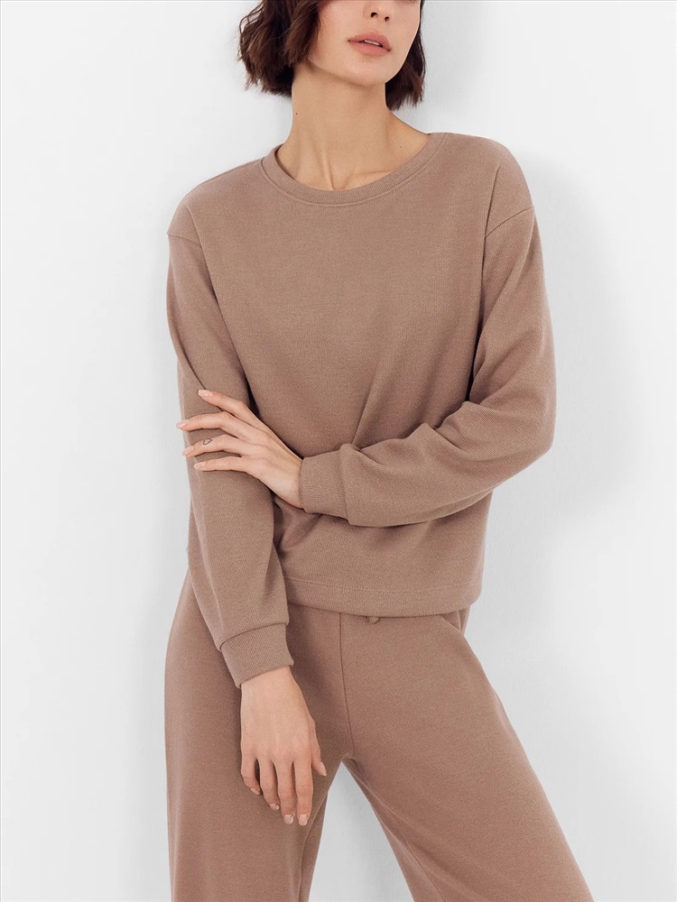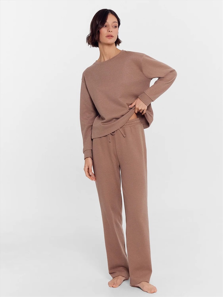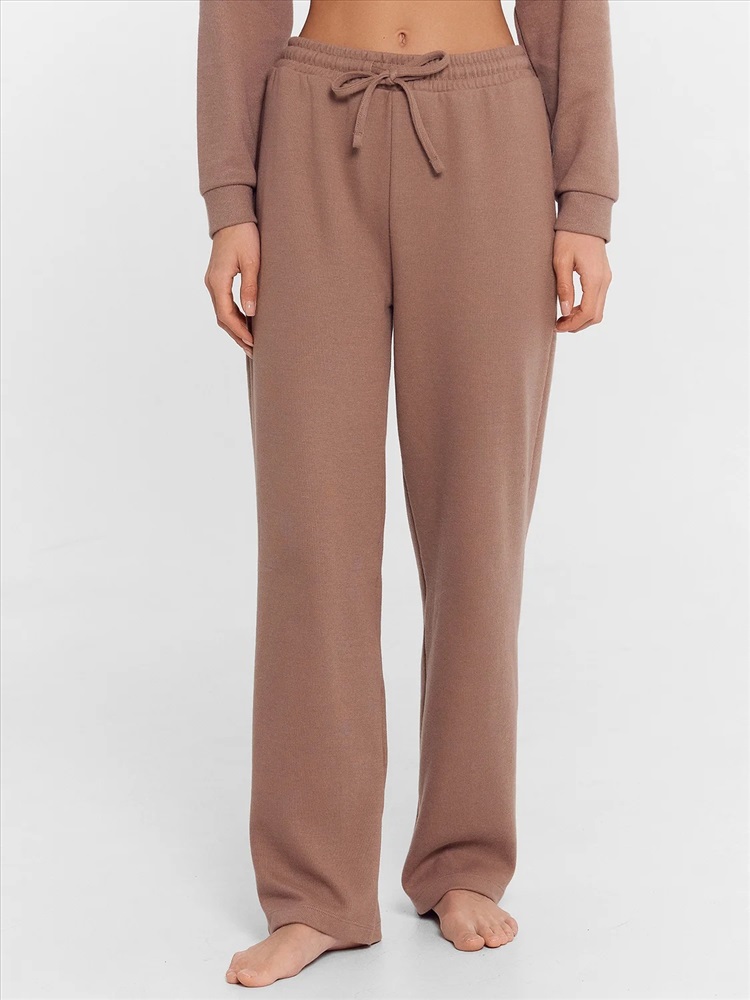 Уют, комфорт и нежность — все это вы найдете в этих домашних женских брюках прямого силуэта из трикотажного полотна. Они созданы специально для сна и отдыха, чтобы вы могли наслаждаться моментами дома с максимальным комфортом. Высокая талия обеспечивает надежную посадку, дарит ощущение уверенности и комфорта. Пояс с эластичной тесьмой внутри и регулировочным шнуром. Сиденье слегка спущено. Неважно, смотрите ли вы фильм дома, читаете книгу, просто готовите, или занимаетесь спортом, эти брюки обеспечат вам необходимую свободу движений и уют. Они идеальны для домашней коллекции и станут незаменимым элементом женского гардероба. Сочетайте их с легкими топами или футболками, чтобы создать непринужденный и модный образ в домашней обстановке. Позвольте себе окунуться в атмосферу уюта с этими домашними брюками. Рекомендуем!