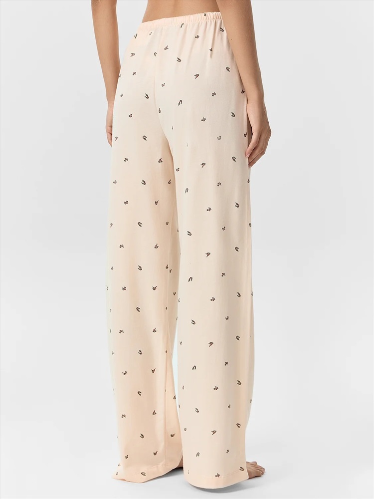 Брюки с посадкой на талии свободного силуэта. Пояс цельнокроеный с резиной внутри 20RV. По центру пояса пробиты петли, протянута бейка из основного полотна. На передних деталях карманы «хулиганы». Низ изделия застрочен швом в подгибку.