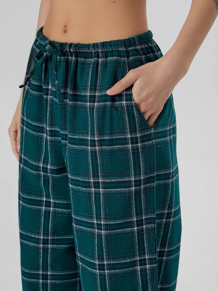 Классическая клетка добавляет образу интересный акцент, а свободный крой гарантирует полную свободу движений. Мягкая текстура ткани дарит приятные тактильные ощущения. Эти брюки станут вашим любимым предметом гардероба для моментов полного расслабления, даря комфорт в течение всего дня.